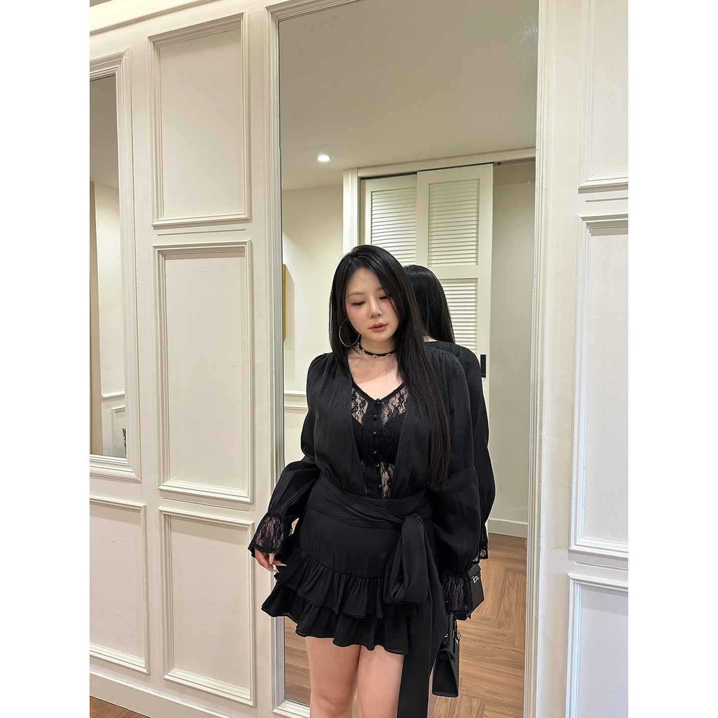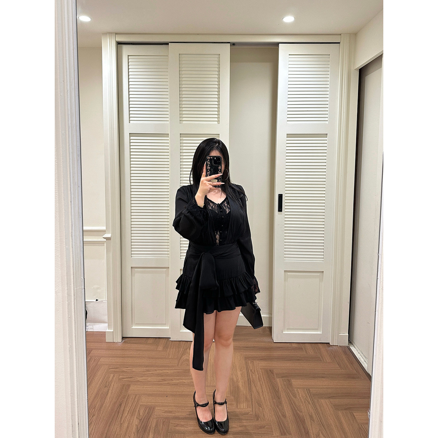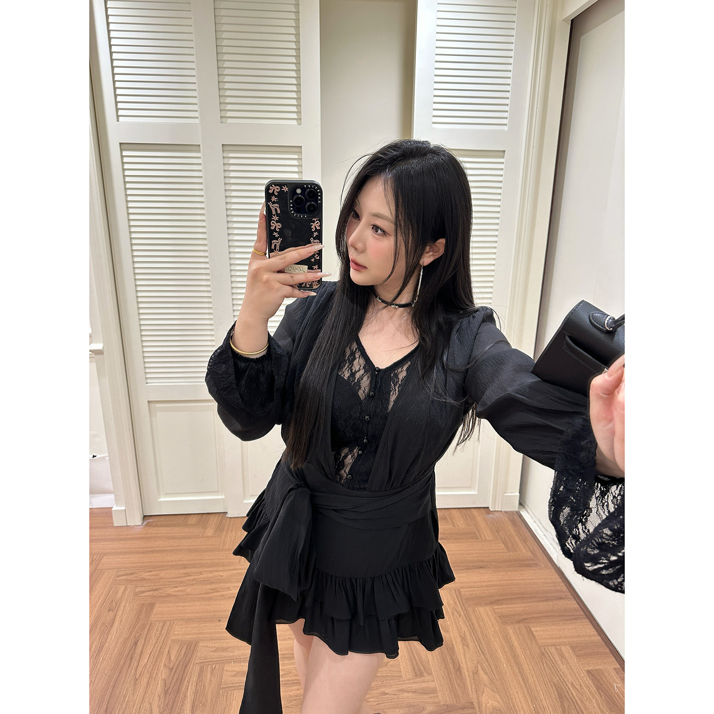 【大小姐】“半岛弥香”法式轻奢性感气质蕾丝长袖纯欲连衣裙短裙