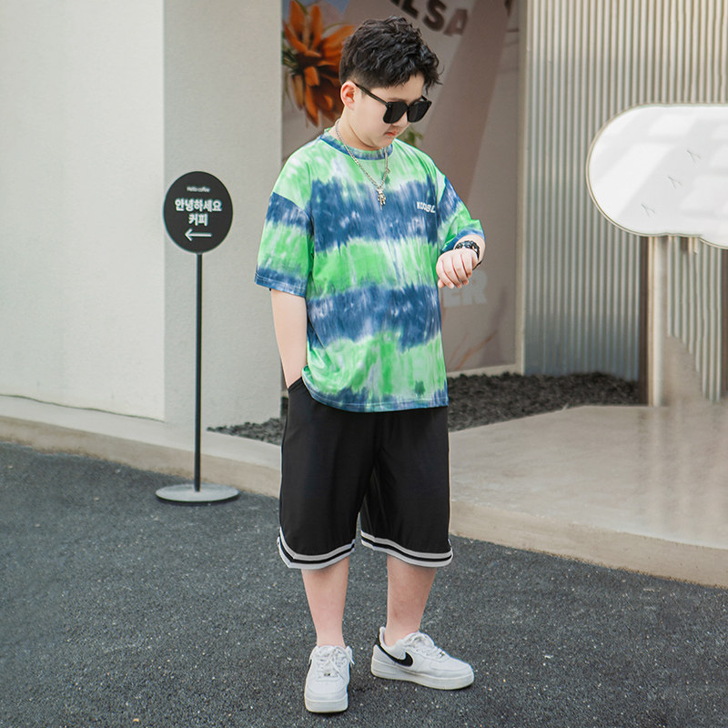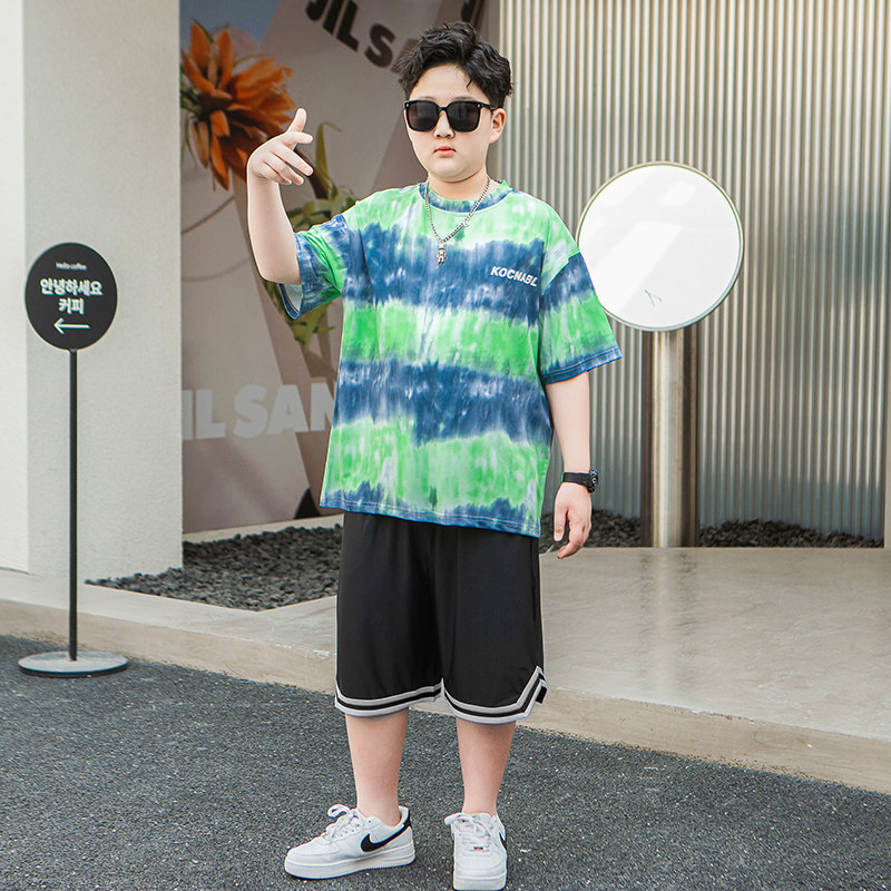 胖男童篮球服速干套装夏季加肥加大中大童宽松短袖运动短裤训练服