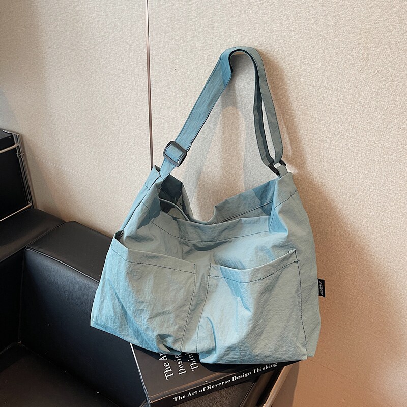 时尚超轻便大容量斜挎包2025慵懒风多兜单肩包防水尼龙布腋下包包