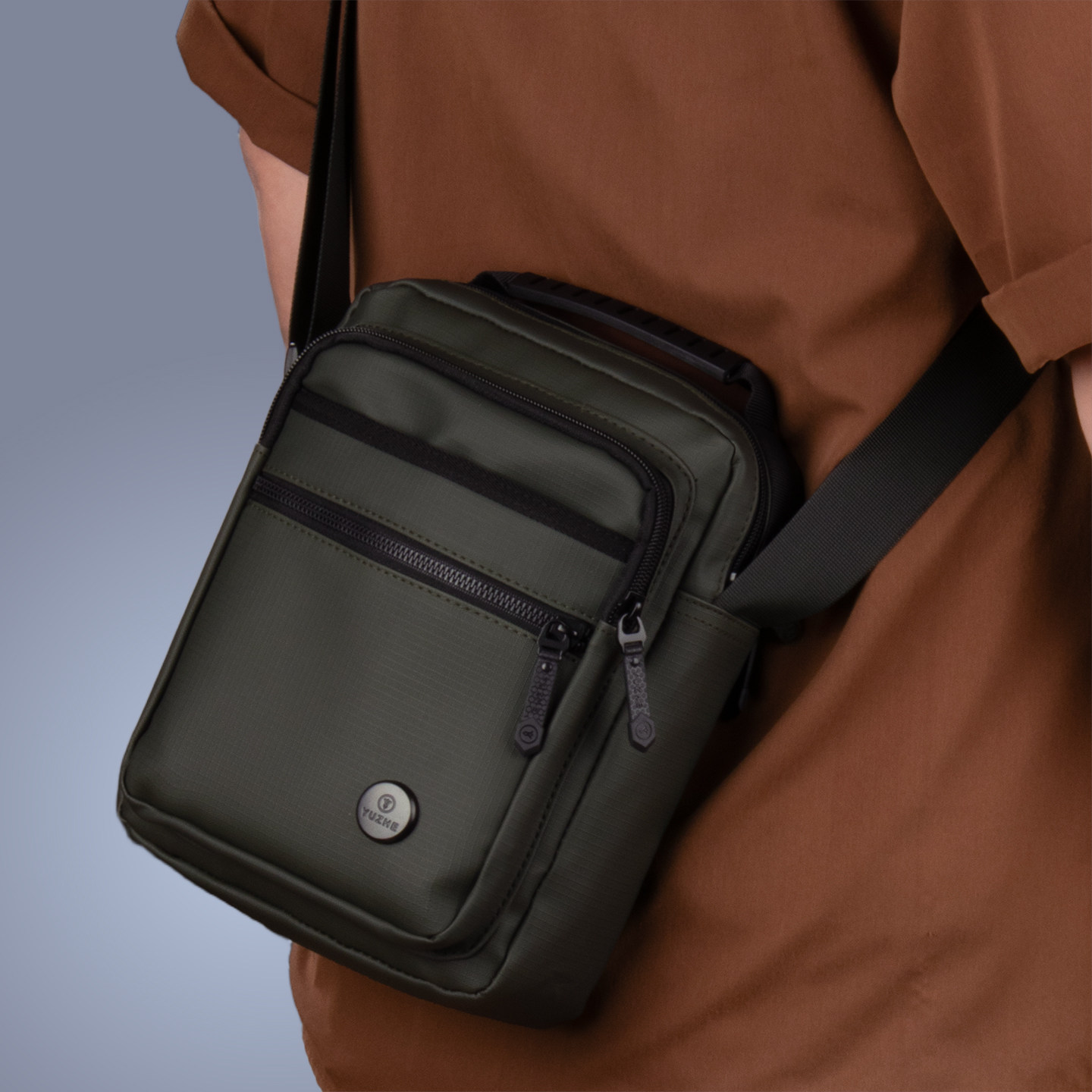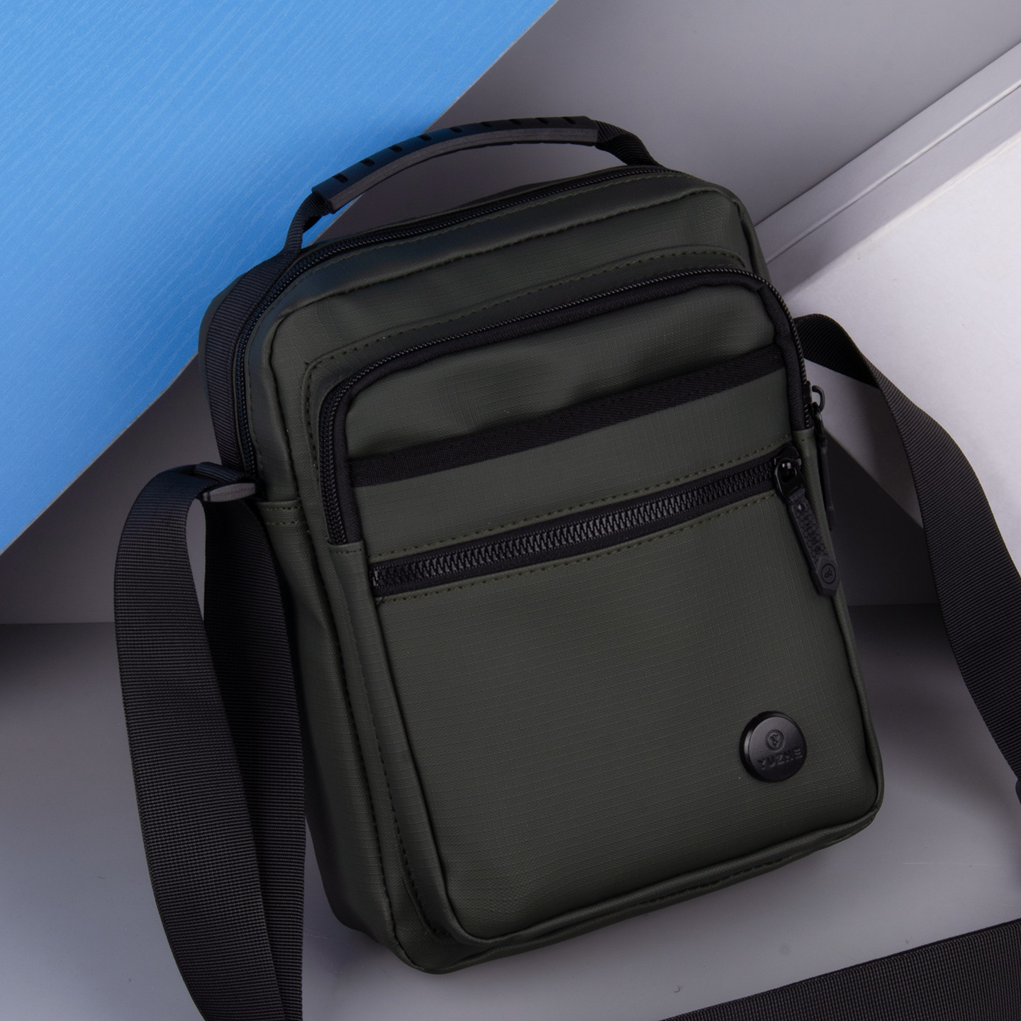 通勤斜挎包男小型休闲单肩包男士多层竖款手提包户外时尚防水男包