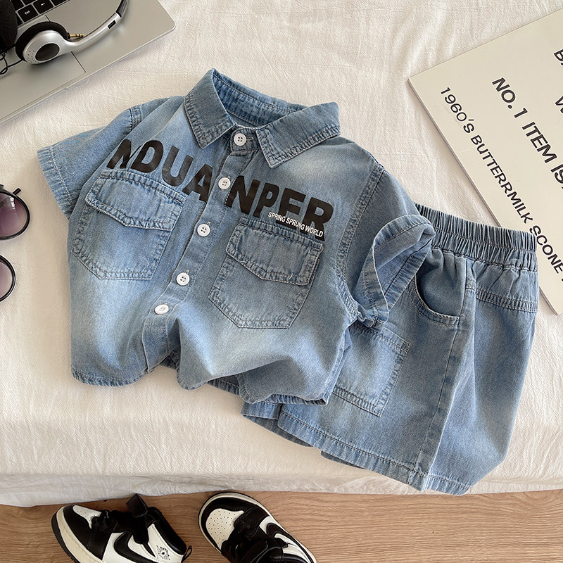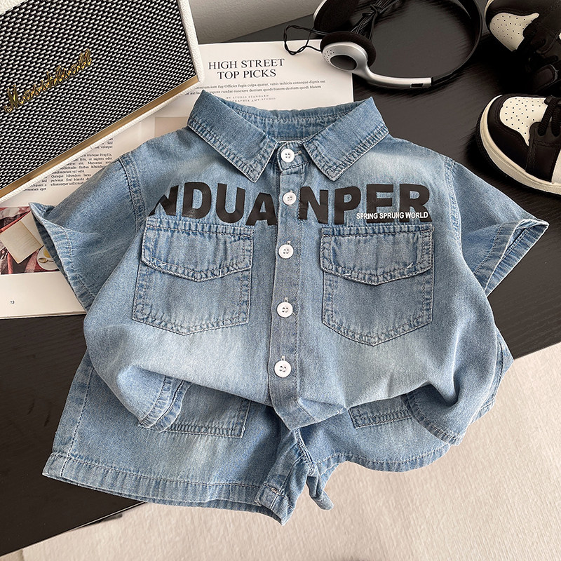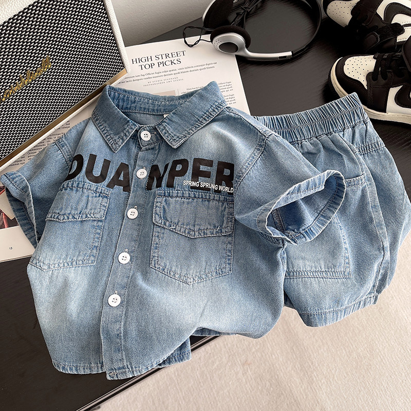 男童夏季牛仔套装潮酷儿童短袖衬衫两件套2025新款宝宝夏薄款衣服