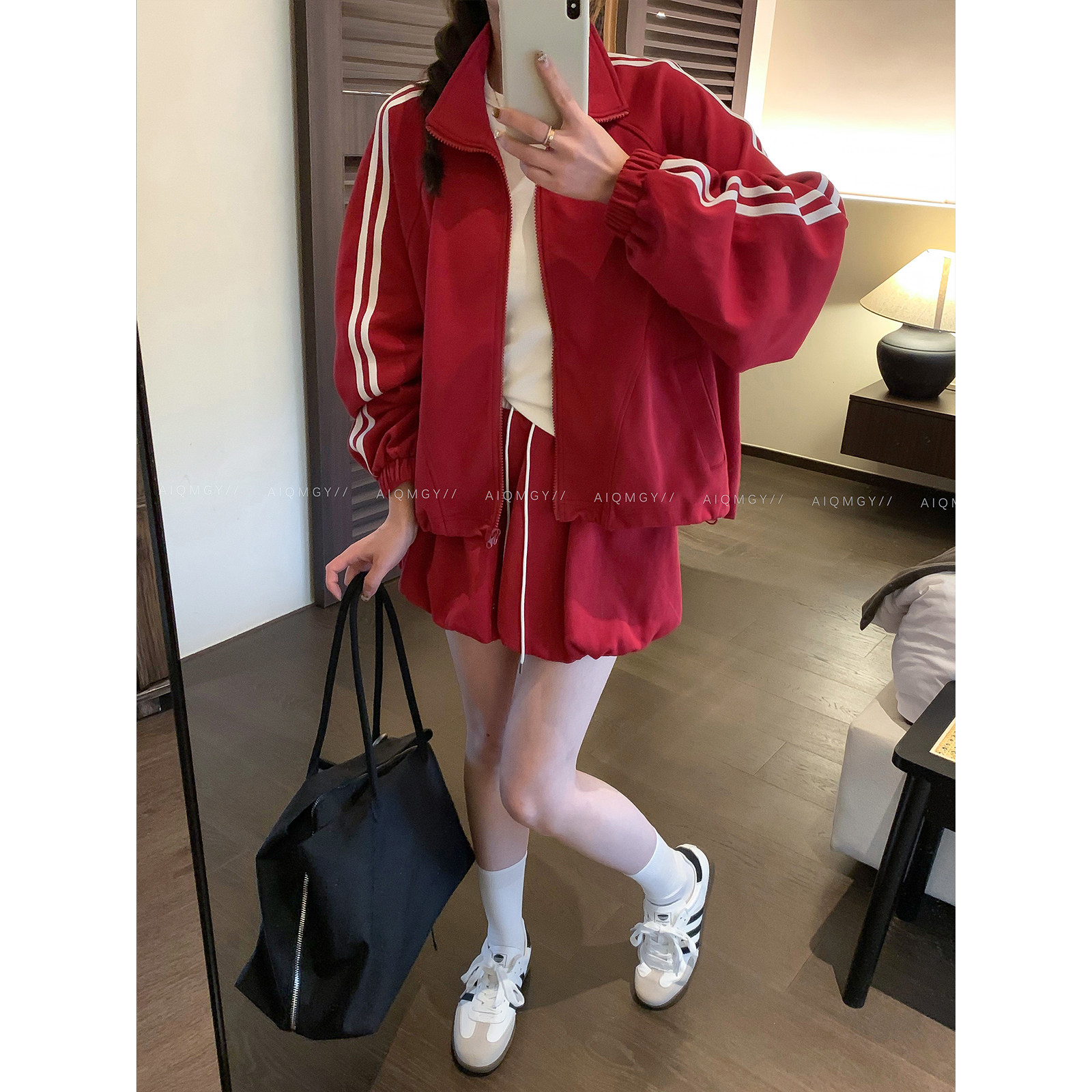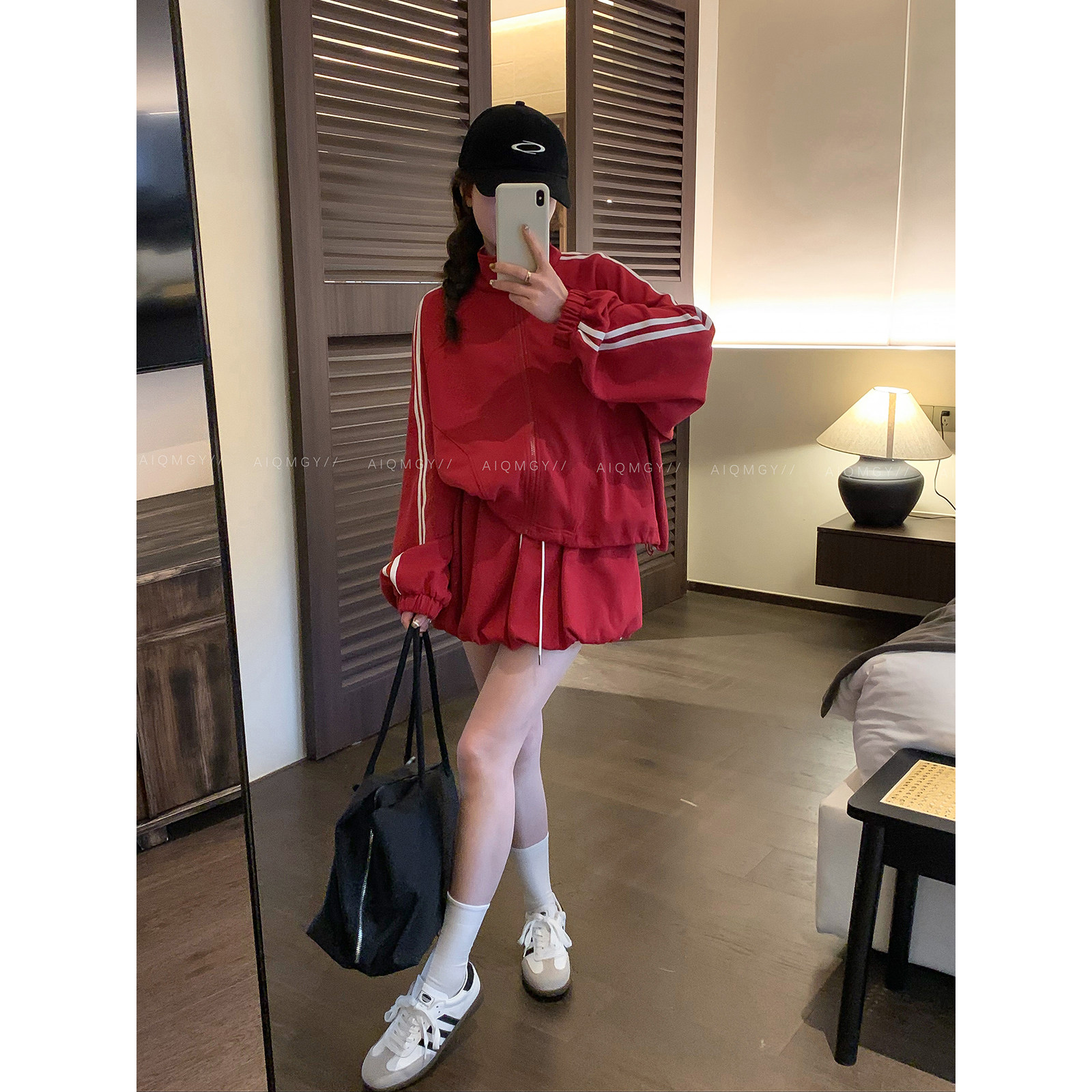 爱情魔鬼鱼 休闲运动套装女2026春季新款宽松外套花苞短裙两件套