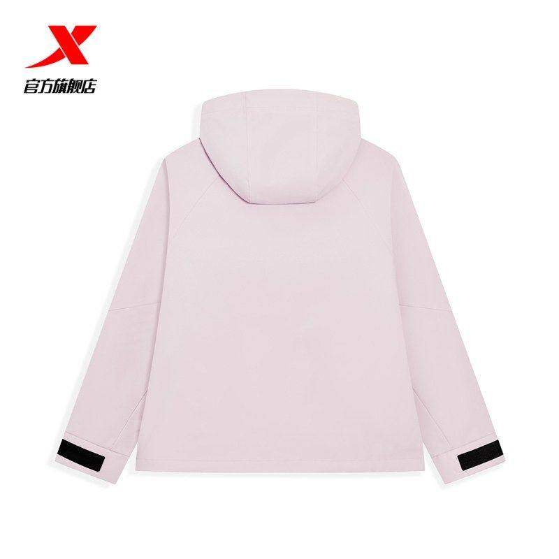 特步女款风衣2026春季新款宽松防风梭织连帽外套上衣974128150503