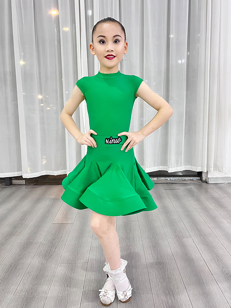 xinw拉丁舞儿童表演服高端比赛规定舞蹈服夏季新款大裙摆女童短袖