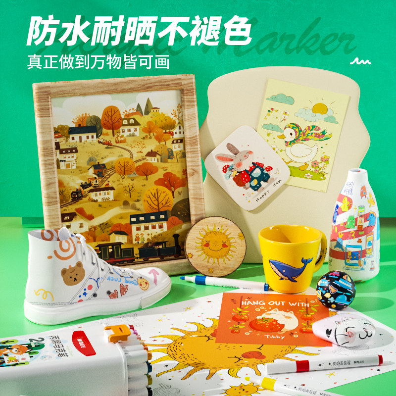 晨光丙烯马克笔不透色可叠色小学生专用儿童美术DIY彩色笔芯水彩笔软头可水洗幼儿园涂鸦防水可竖放丙烯48色