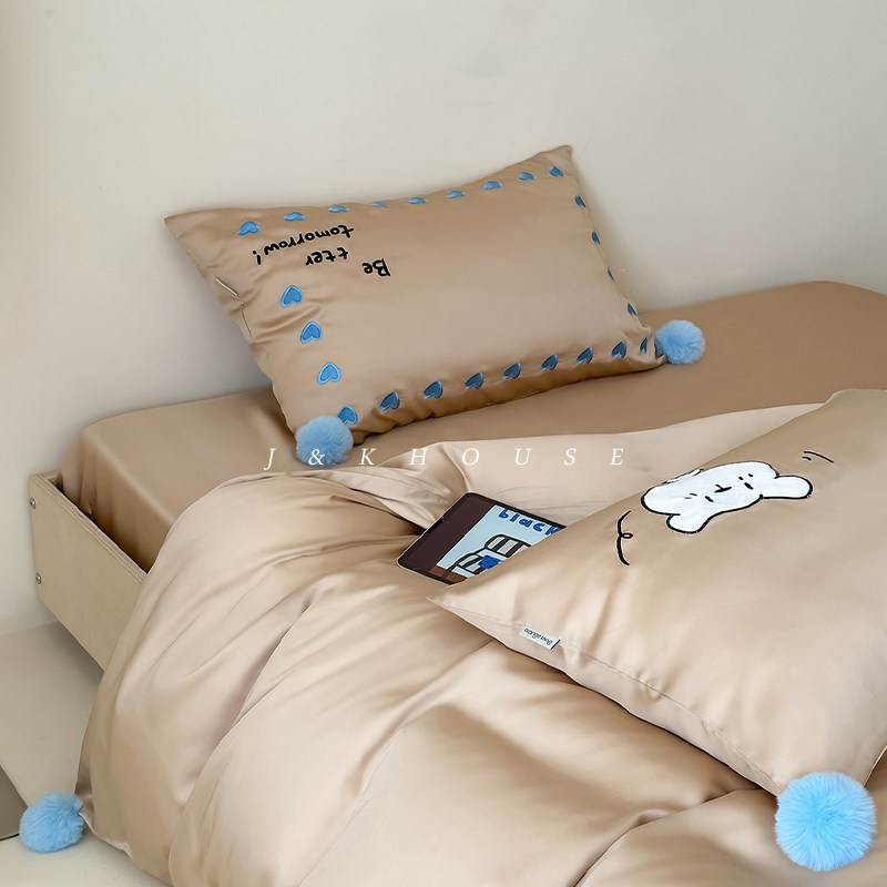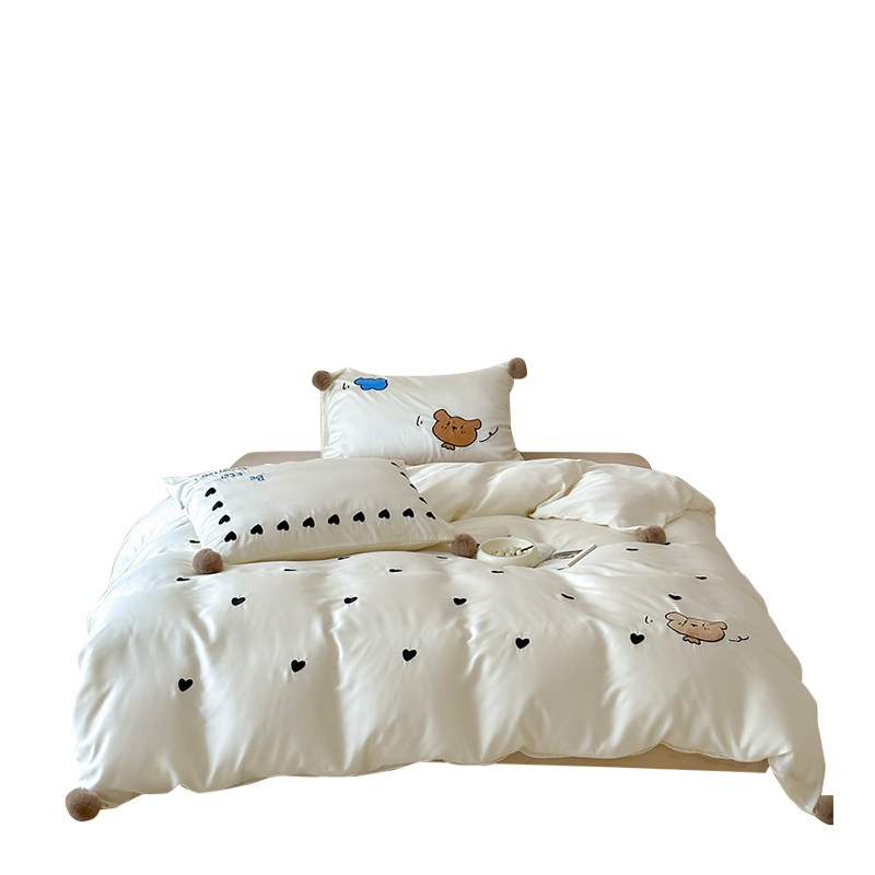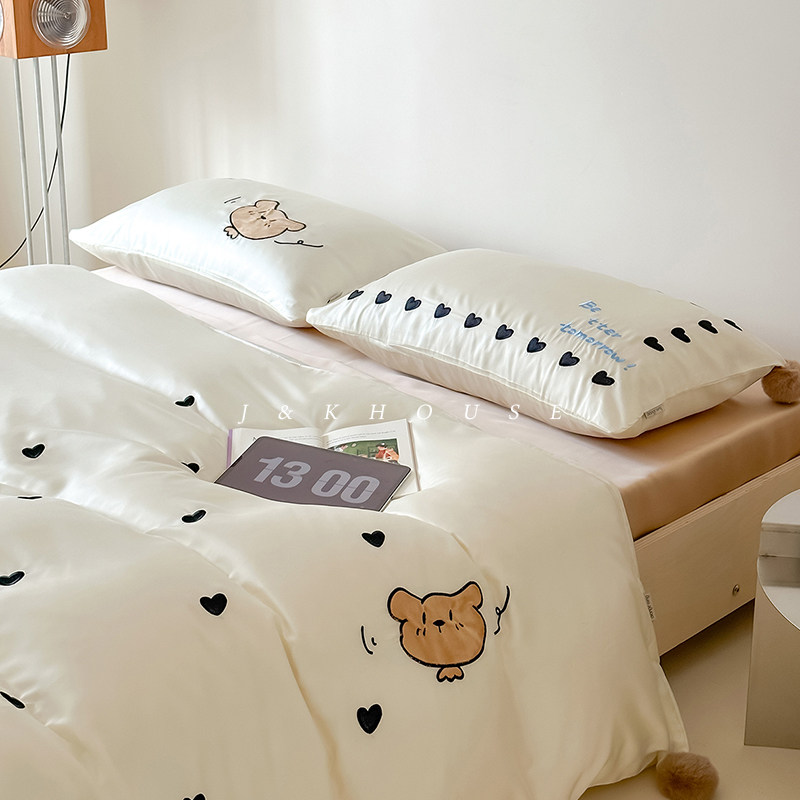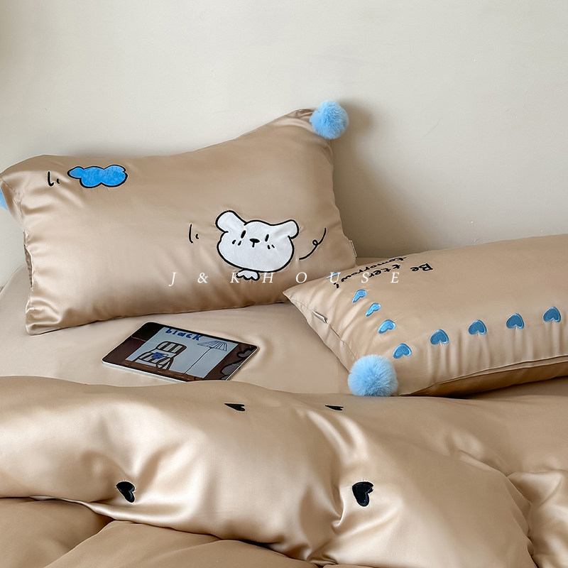 Lovely| 卡通可爱天丝四件套小熊刺绣床笠儿童春夏季被套床上用品