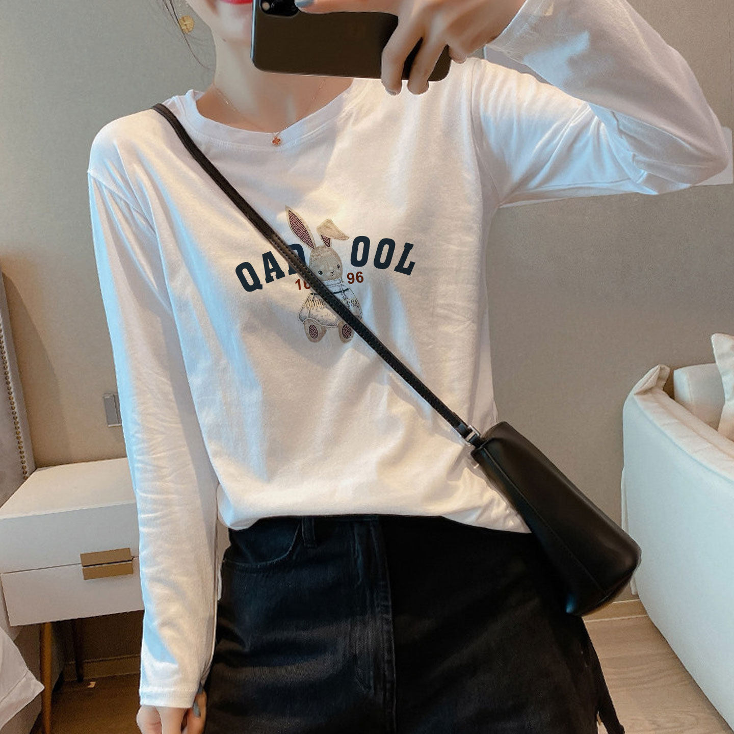 早春白色纯棉长袖t恤女装2026新款磨毛可外穿洋气内搭打底衫上衣
