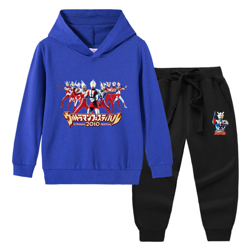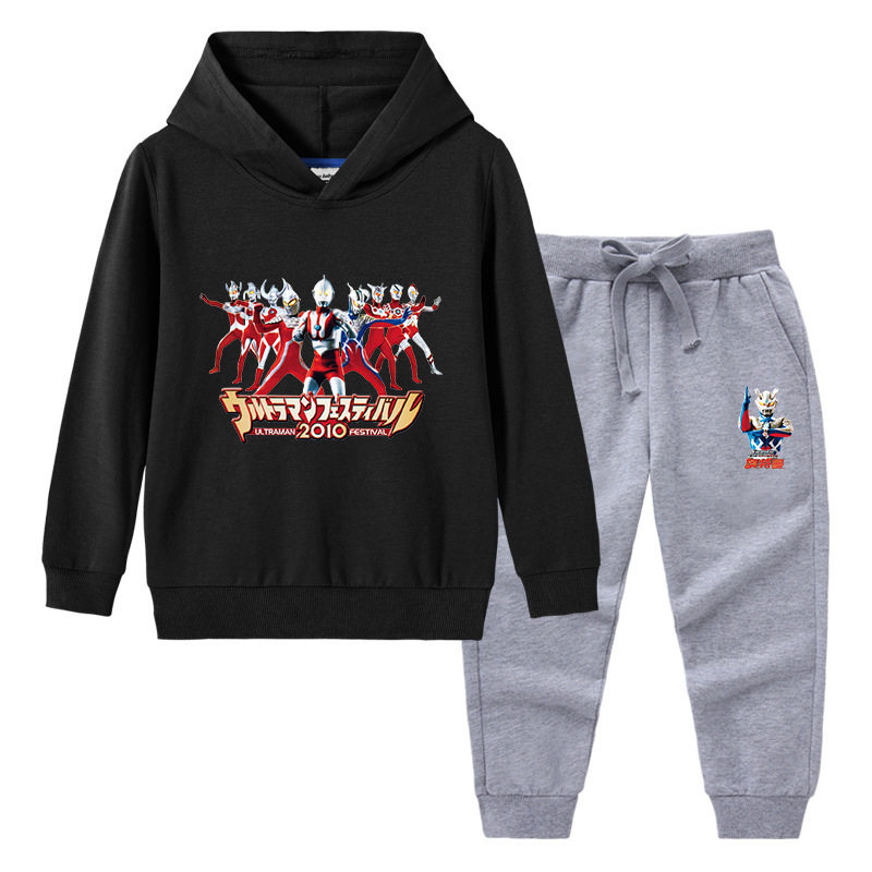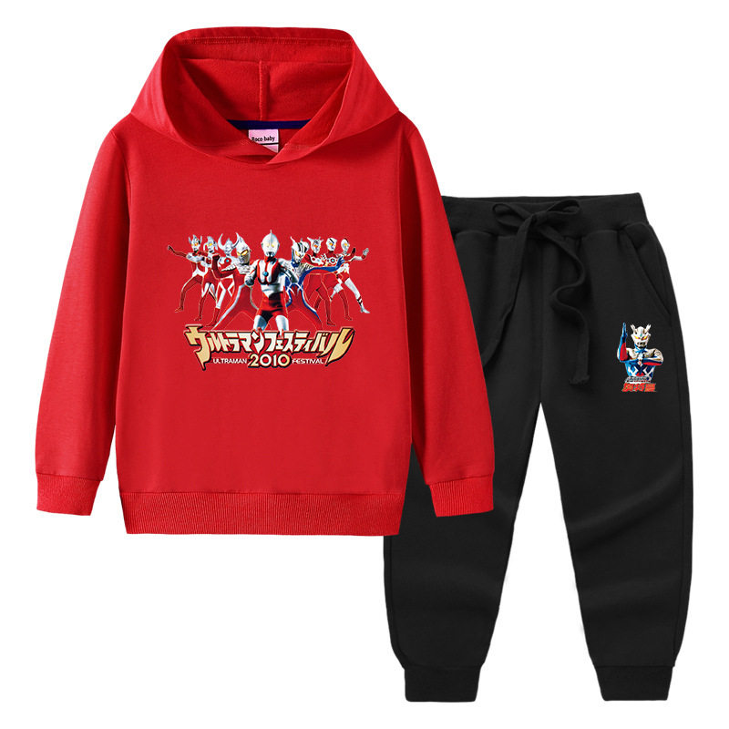 奥特曼衣服男童套装春季儿童薄款卡通两件套男孩连帽长袖卫衣春装