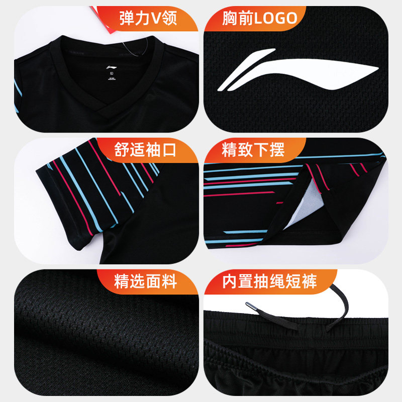 断码清仓李宁羽毛球服男女款运动短袖比赛服速干球衣上衣短裤套装