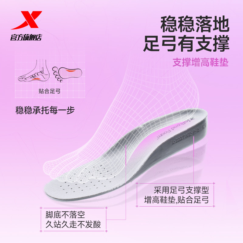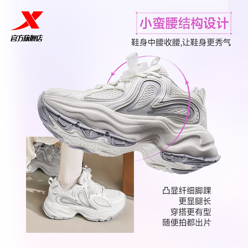 特步巴斯克丨休闲鞋女鞋网面厚底内增高老爹鞋足弓支撑鞋垫运动鞋