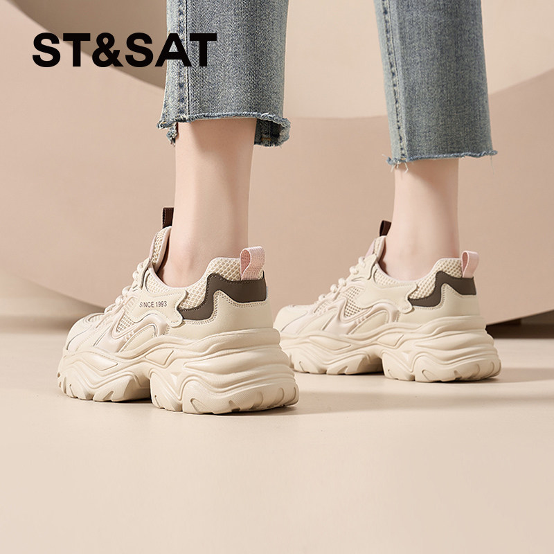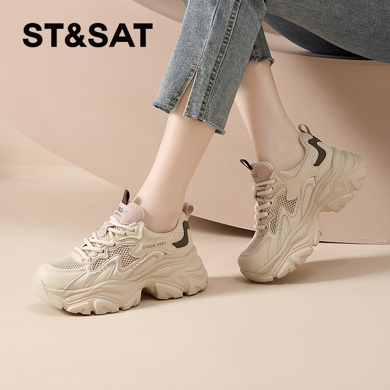 星期六网面老爹鞋女款百搭新款春夏透气休闲鞋厚底增高女鞋不闷脚