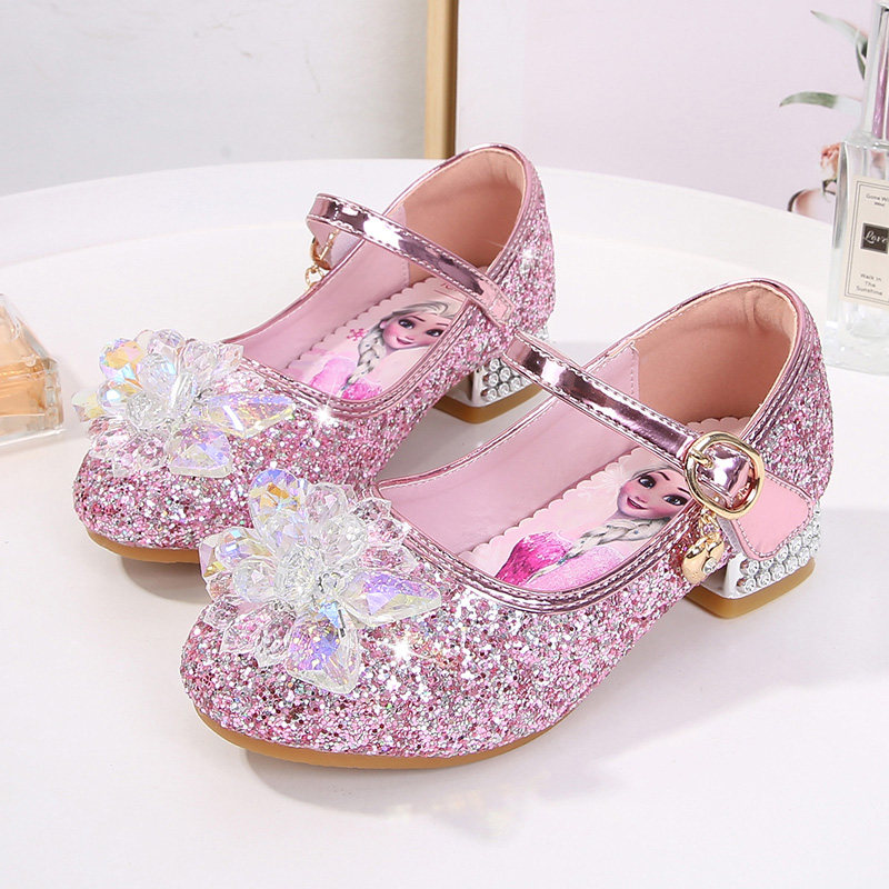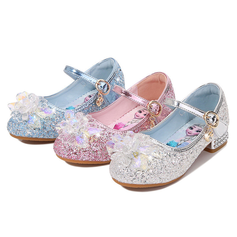 女童公主鞋2026新款春秋艾莎水晶女孩配裙子高跟小皮鞋爱莎儿童鞋