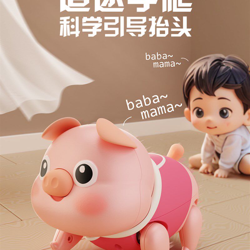 电动牵绳小猪会走路唱歌儿童1一3岁宝宝婴儿爬行引导玩具0到6个月