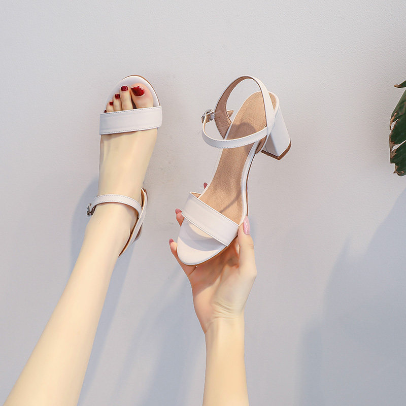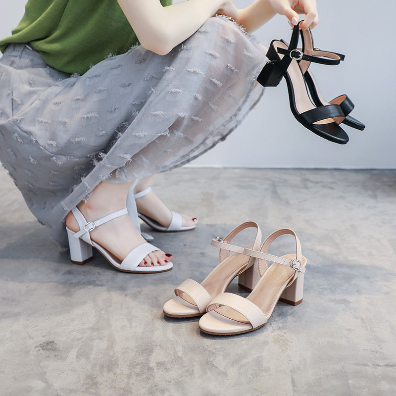 路佳林真皮女鞋高跟凉鞋女一字带夏季新款中跟粗跟仙女风百搭裙子