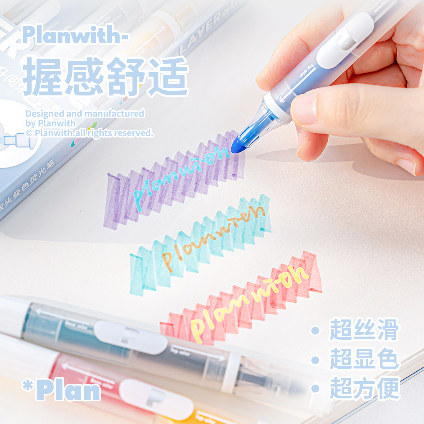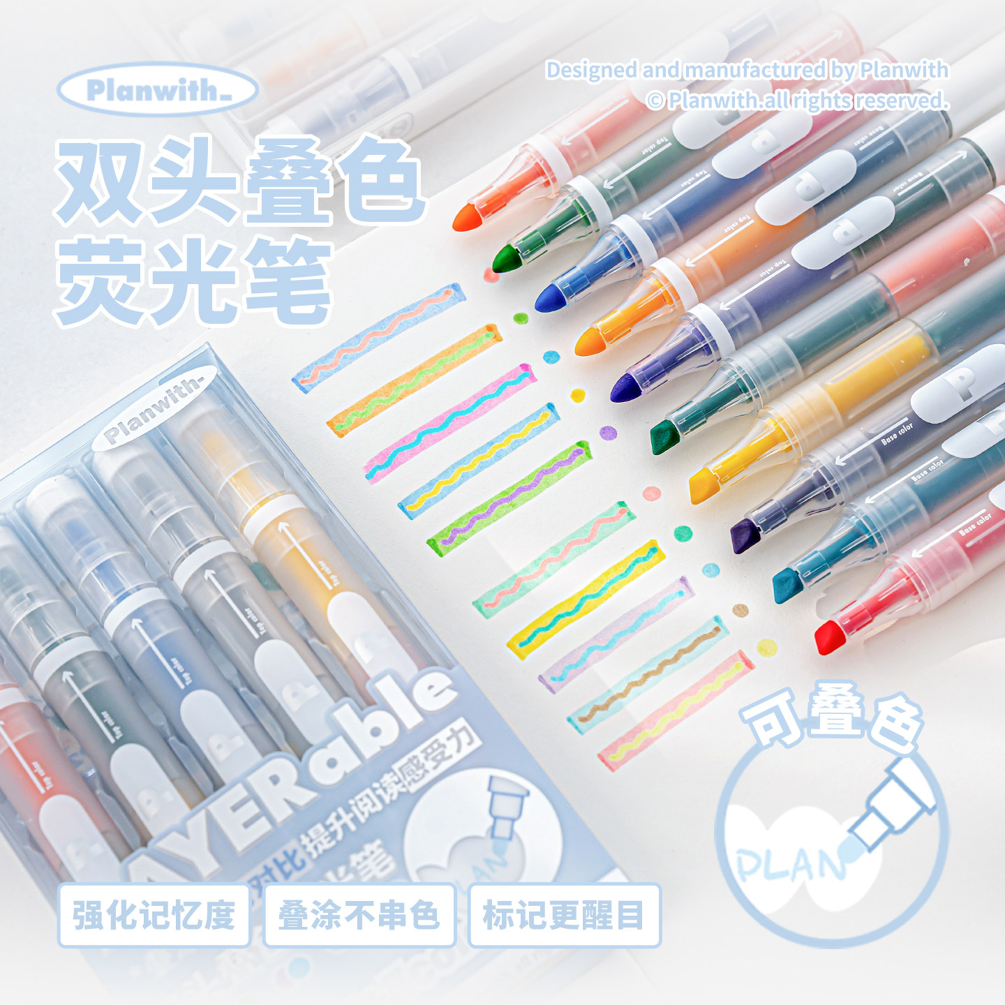 Planwith双头荧光笔做笔记专用高颜值ins风记号笔彩色划重点叠色