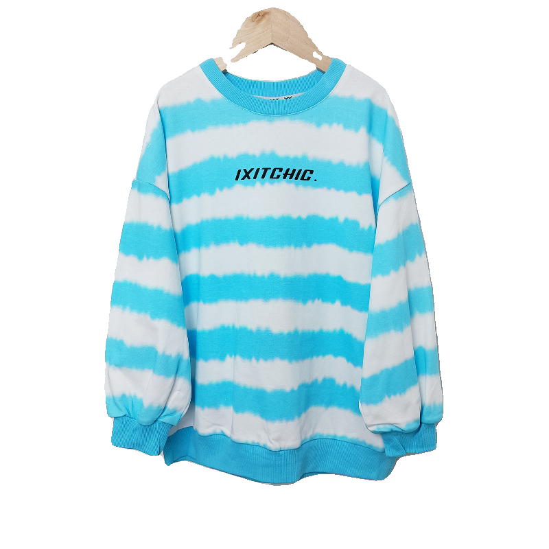 青少年男童潮牌卫衣ix* 蓝白条纹晕染扎染薄款长袖男童卫衣初中生