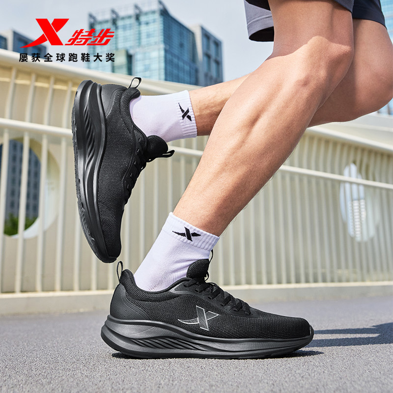 特步羽逸丨运动鞋男鞋春季新款透气网面黑色轻便休闲减震跑步鞋男