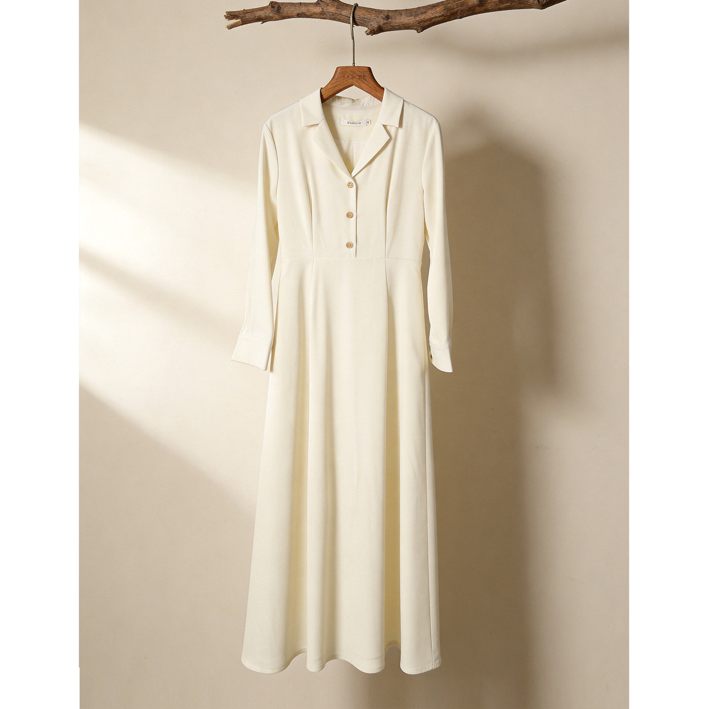 白色长袖连衣裙女2026年春季新款气质随性慵懒知性V领中长款裙子