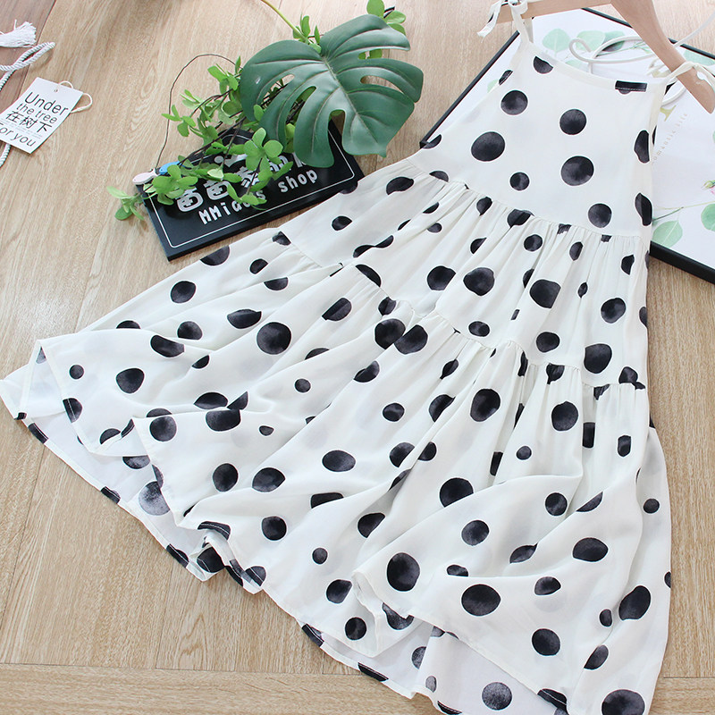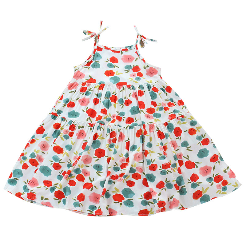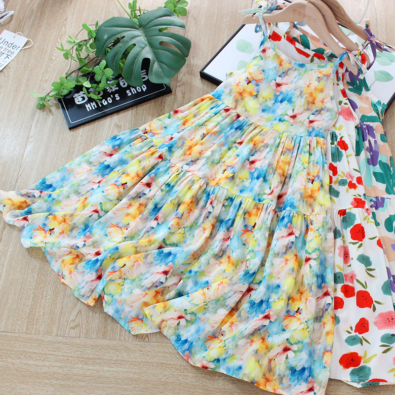 女童绵绸吊带裙中大童大摆人造棉连衣裙儿童薄款夏季沙滩裙度假风