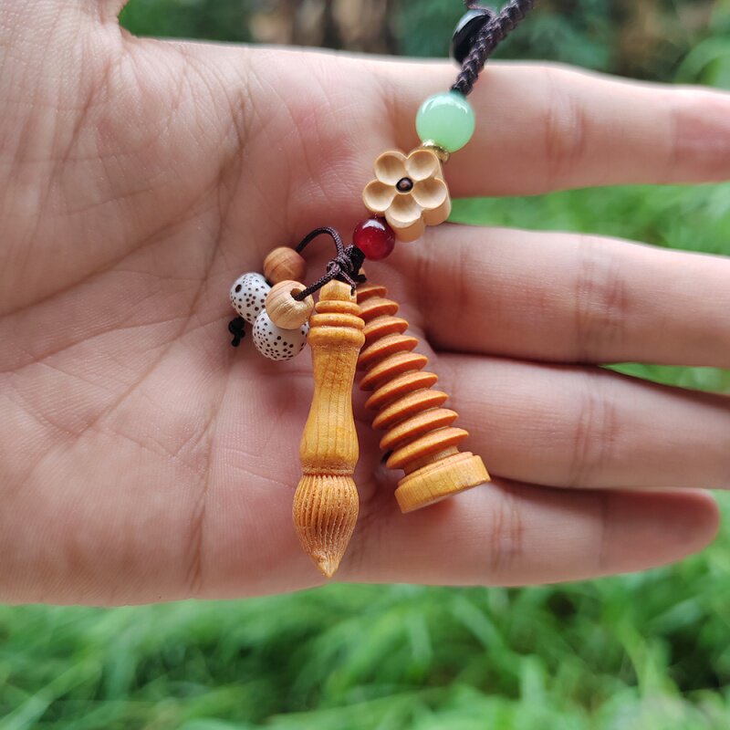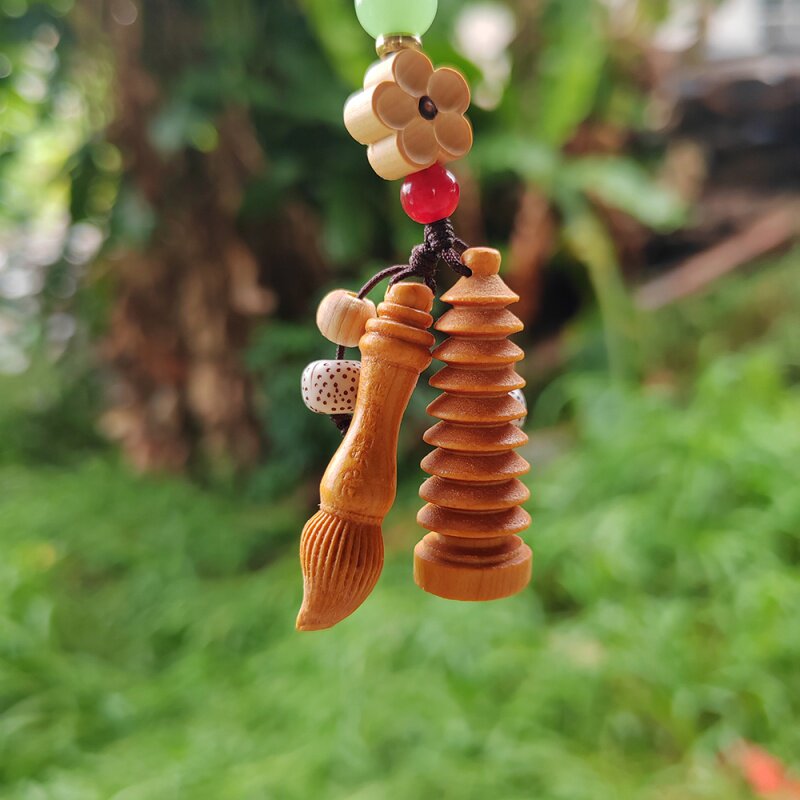 崖柏文昌塔搭配毛笔钥匙扣男女生随身把玩工艺品金榜题名国风挂件