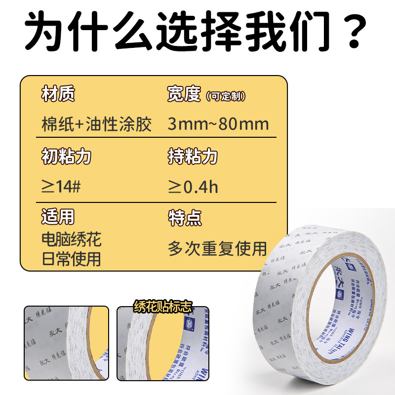 永大双面胶学生用手工双面胶高粘度不留痕强力3mm宽永大绣花贴两面胶重复使用固定墙面可撕胶纸半透明胶薄款