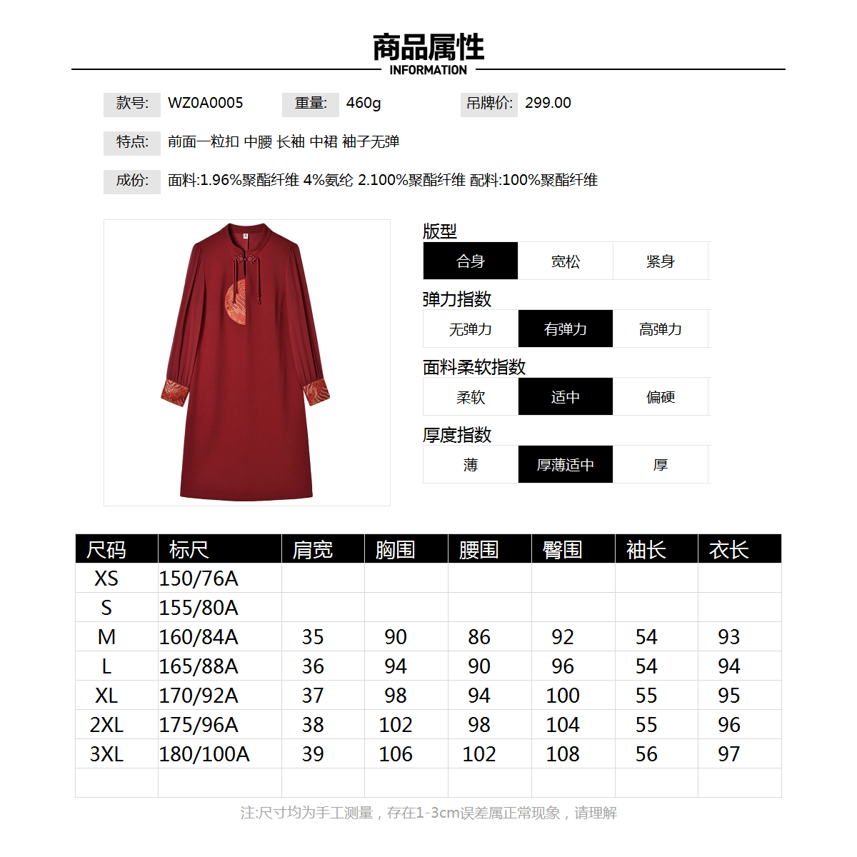 Outlets专柜撤柜正品 WZ春装2025新款轻量新中式气质一粒扣连衣裙