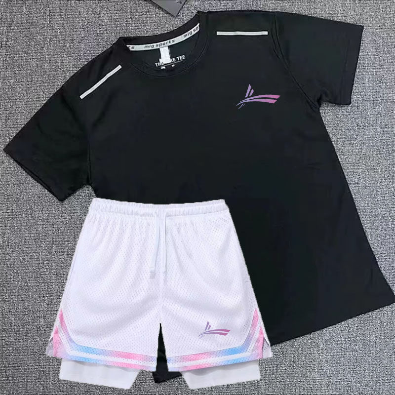 体育田径速干运动套装男女夏季短袖T恤短裤健身跑步训练服两件套