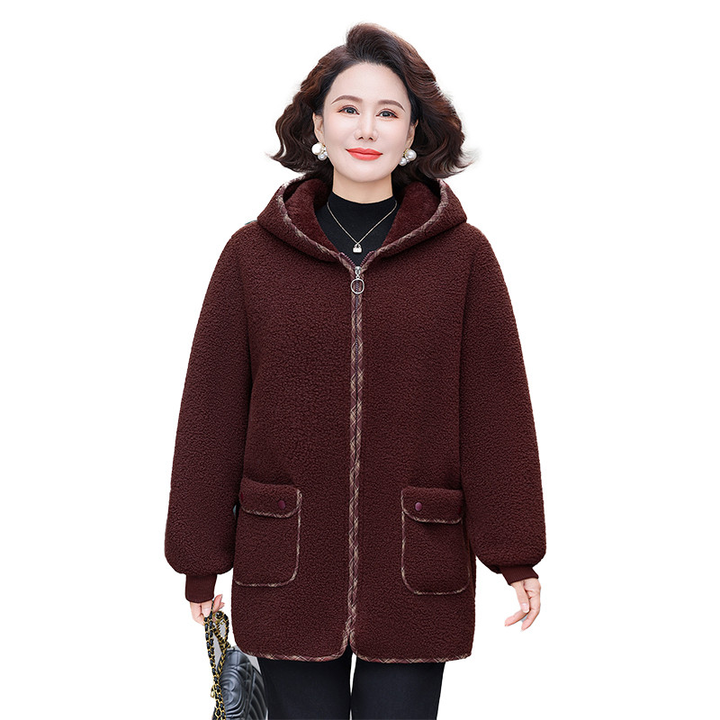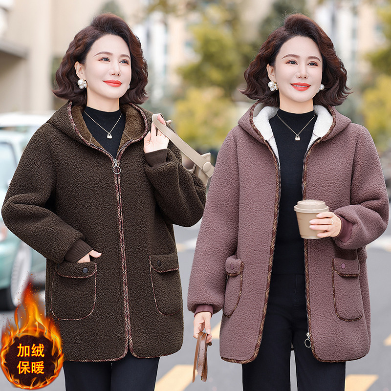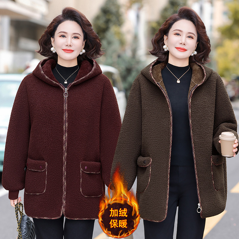 中老年女时尚保暖棉服妈妈冬季颗粒外套洋气加绒新款加厚连帽棉衣