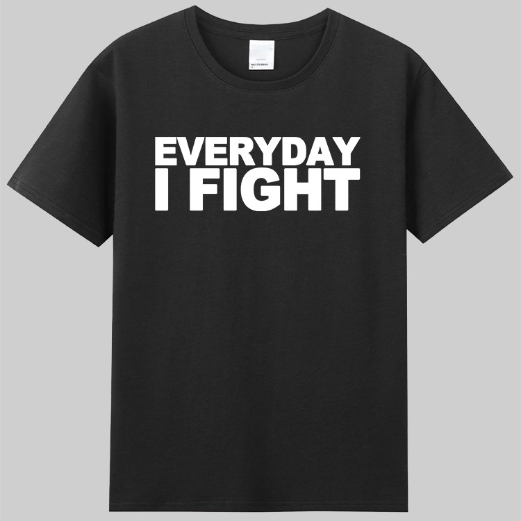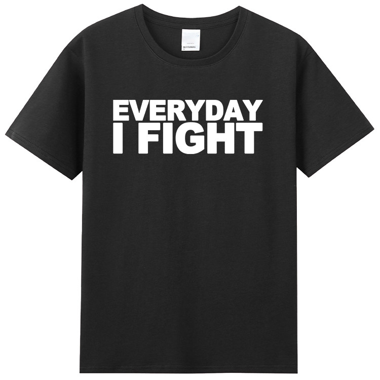 everyday i fight短袖纯棉圆领男女训练健身字母印花t恤撸铁衣服