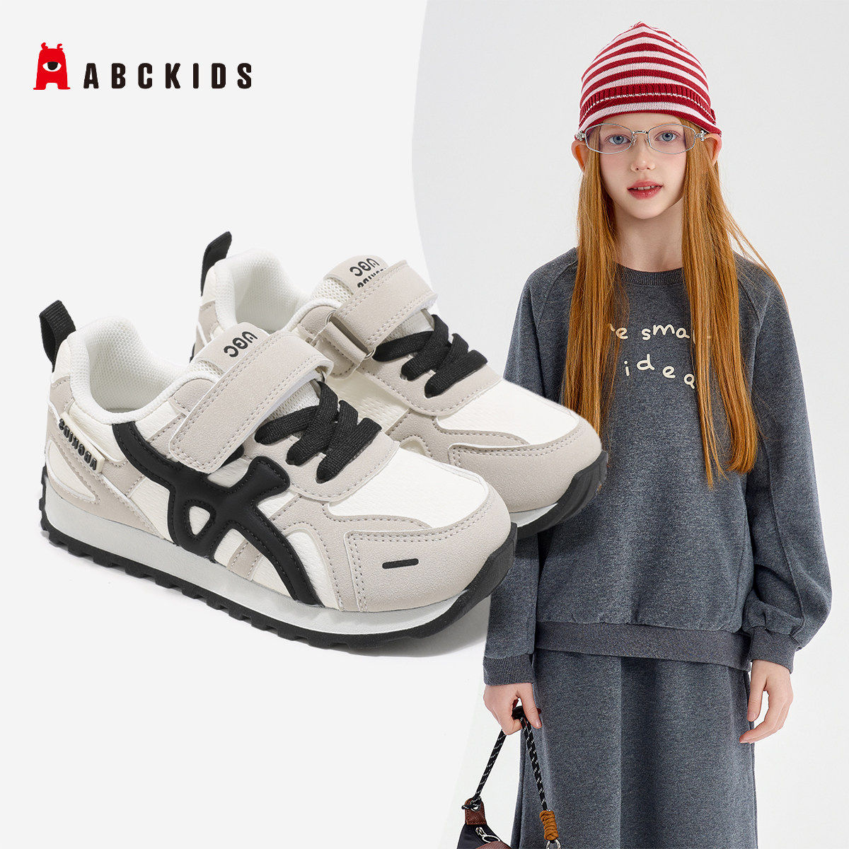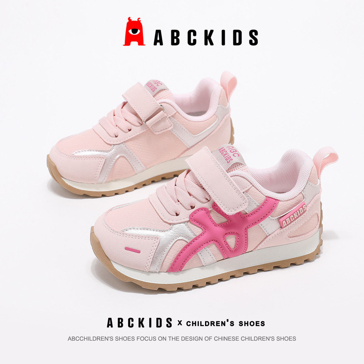 Abckids童鞋男女童皮面运动鞋2026春季新儿童鞋魔术贴跑步德训鞋