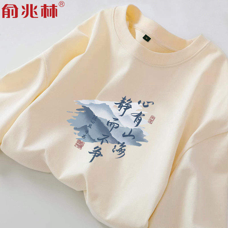 新中式长袖t恤男女款喜鹊好运秋季青少年宽松休闲圆领内搭打底衫