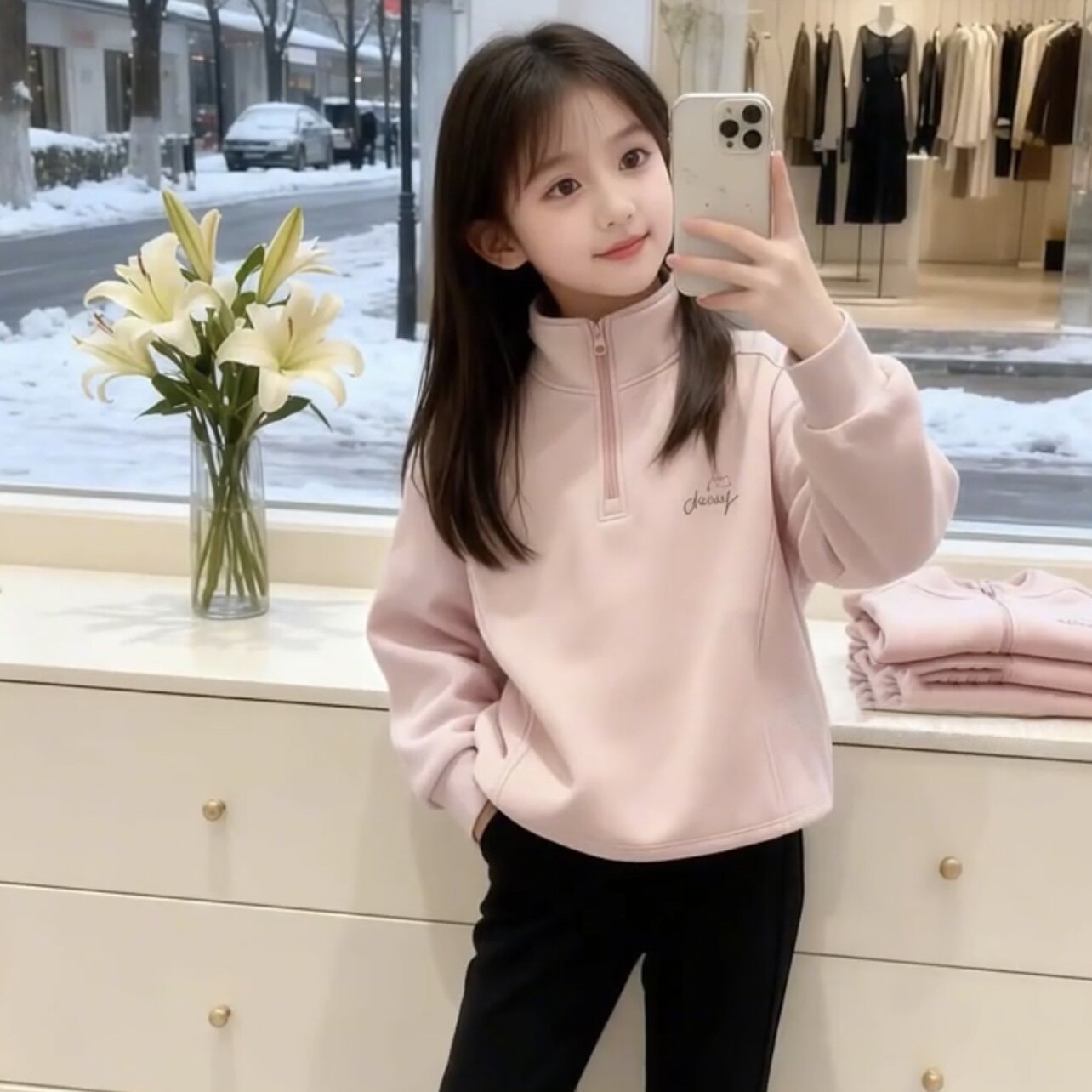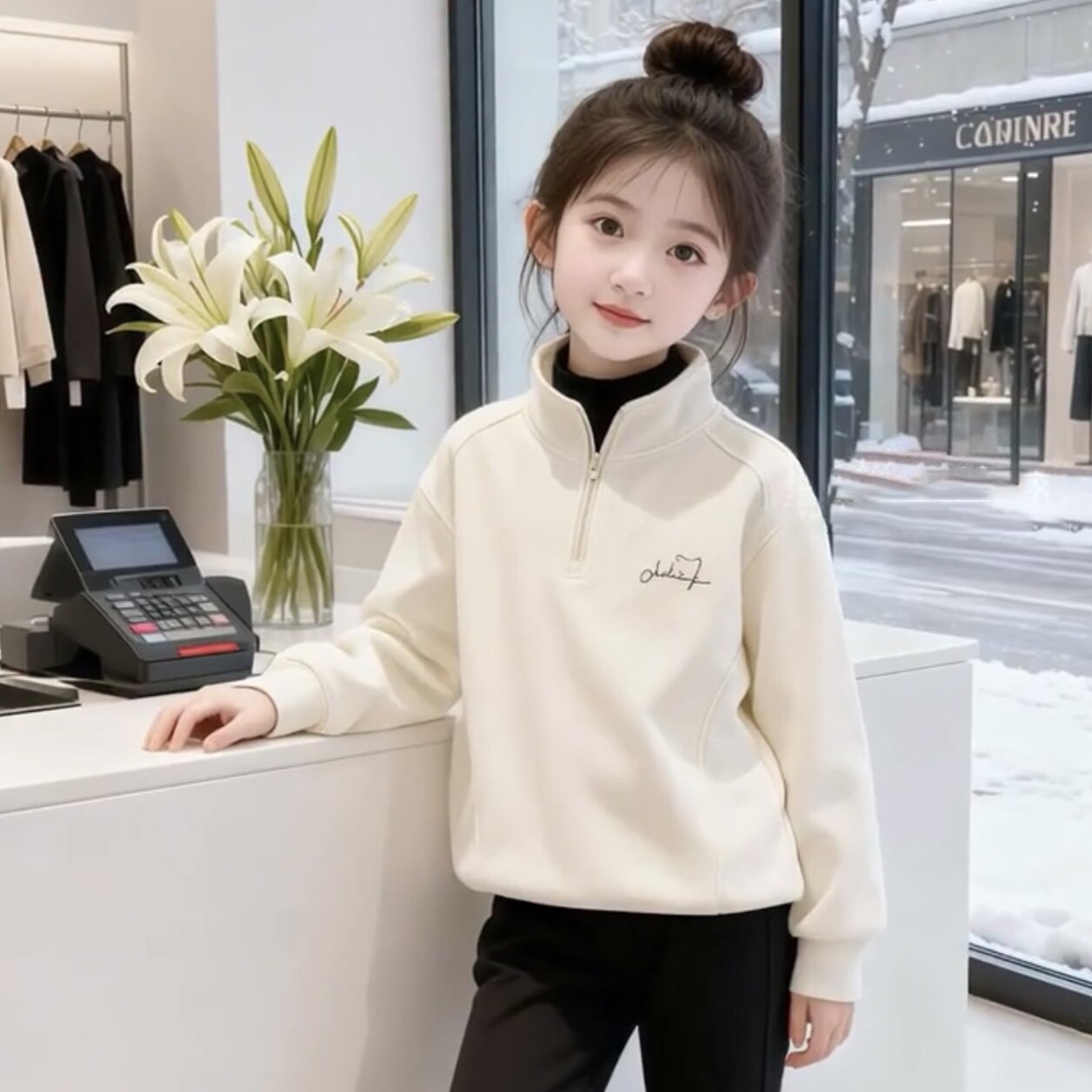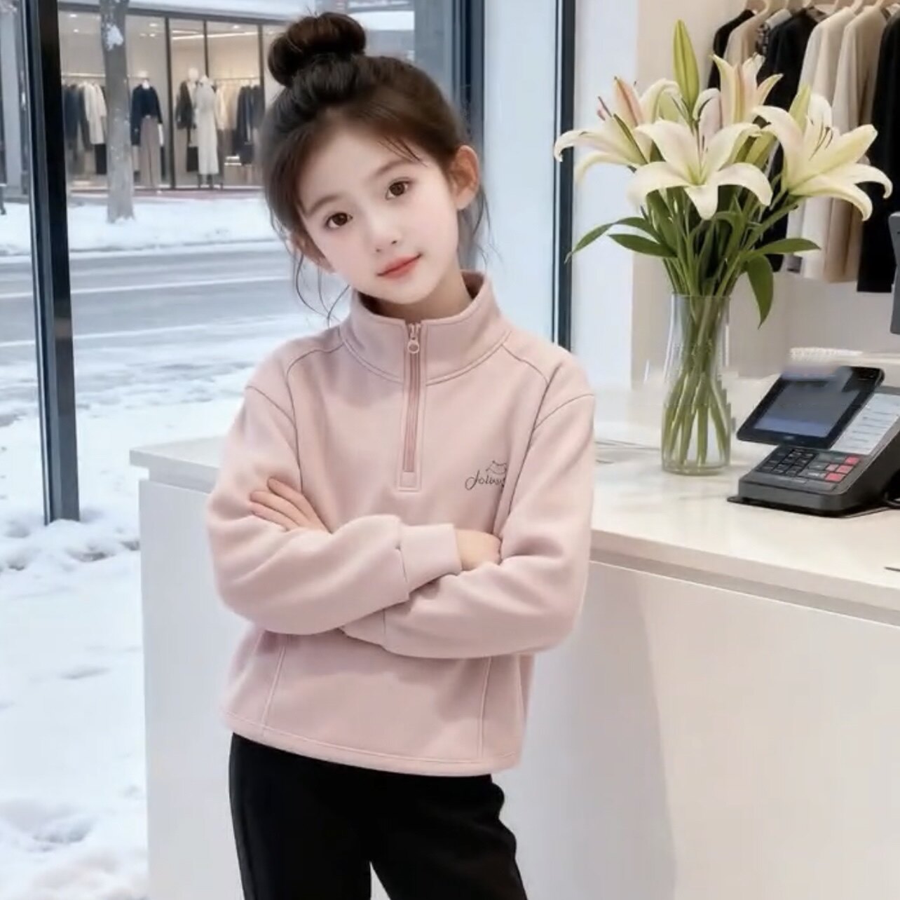 女童秋冬德绒卫衣加绒加厚休闲女宝宝半高领时尚洋气休闲长袖上衣
