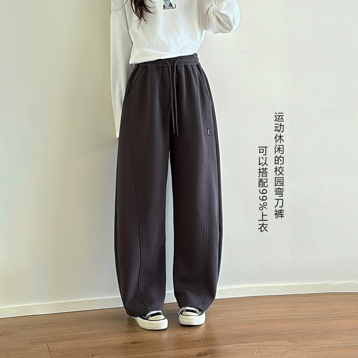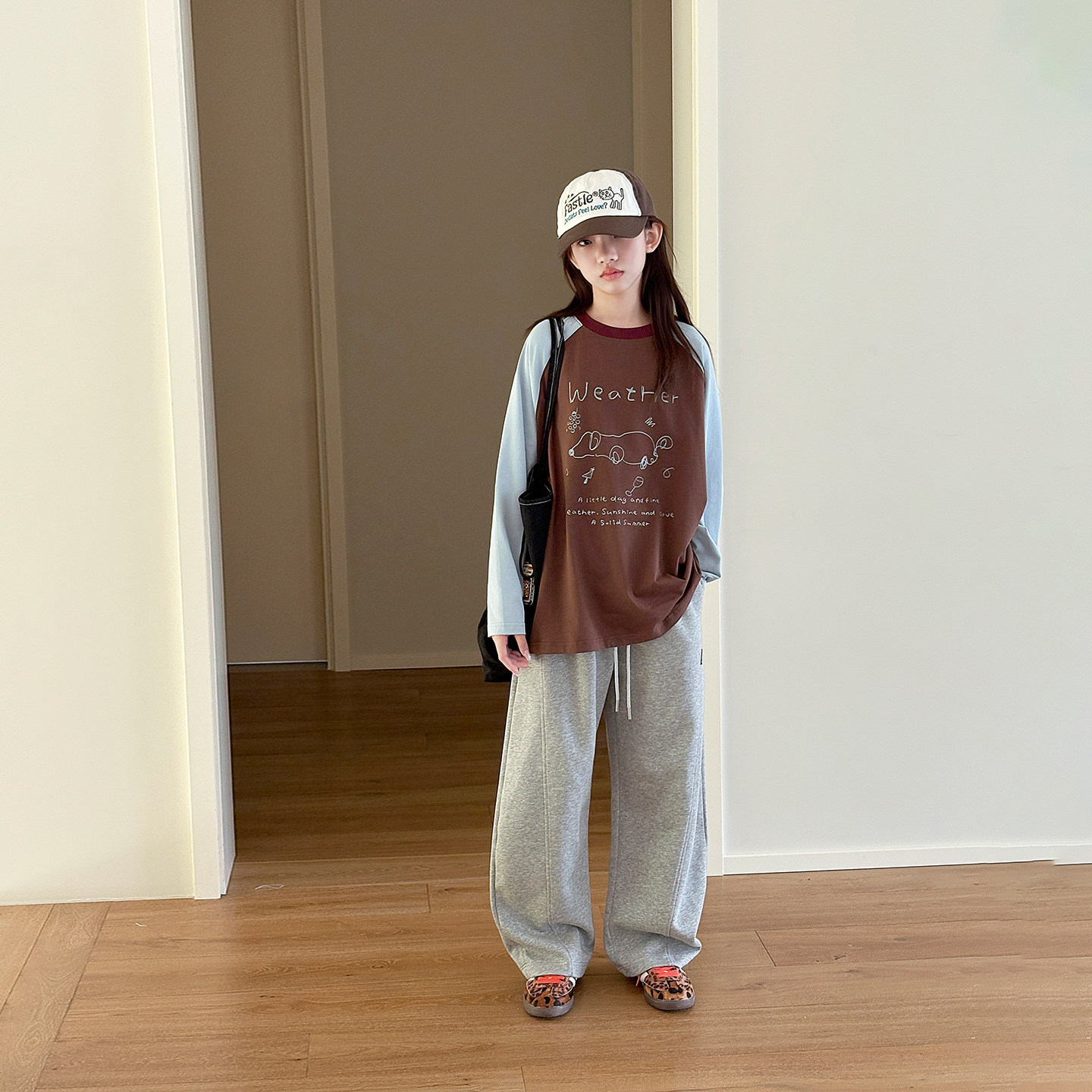 艾上朵女童休闲裤20226春装新款初中生宽松弯刀裤学生运动卫裤子