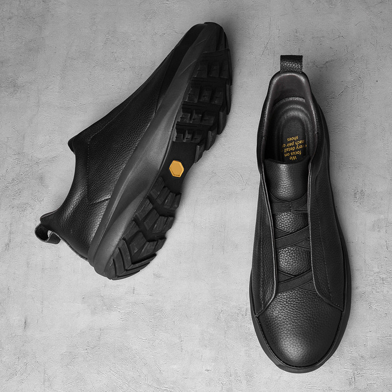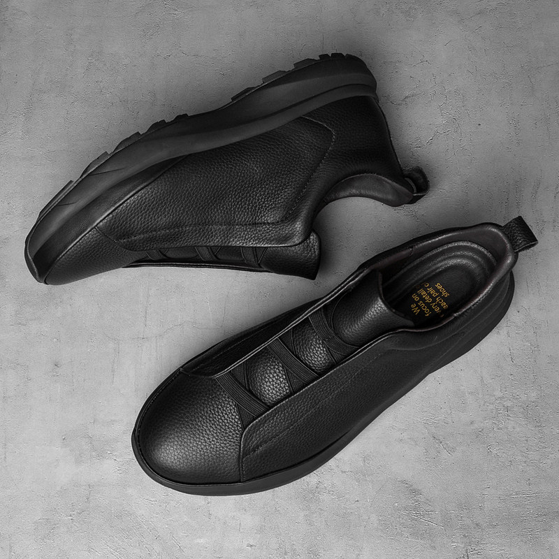 软底真皮纯牛皮男鞋无鞋带一脚蹬男式休闲皮鞋头层全皮面运动鞋子