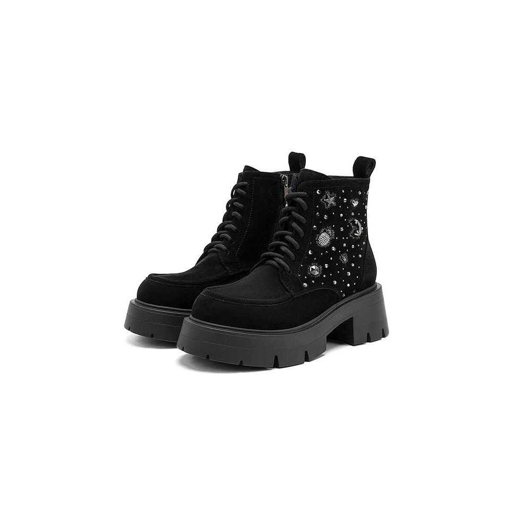 诺贝达专柜正品2024秋冬款厚底增高休闲粗跟马丁靴女短靴RA247202