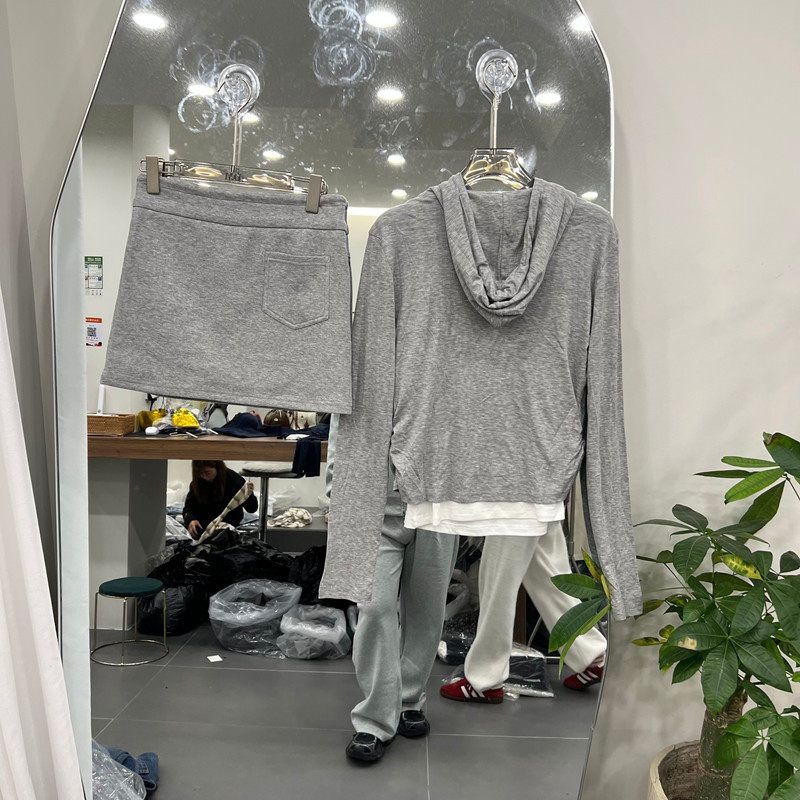 欧洲站2026春季新款时尚立领连帽假两件卫衣+半身裙套装女款欧货