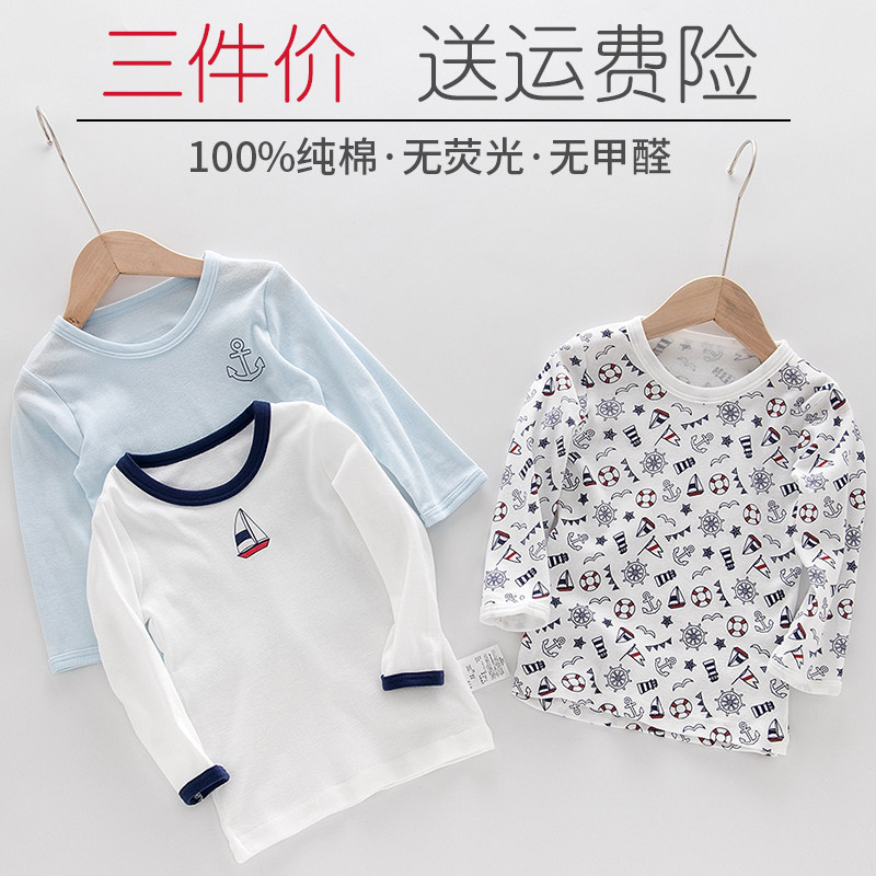 春季3件装儿童薄款纯棉a类打底衫内衣男童宝秋衣上衣长袖T恤睡衣