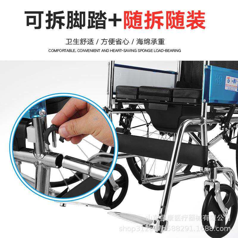 凯洋KY608轮椅带便盆折叠轻便便携老人残疾人手推车带刹车轮椅车