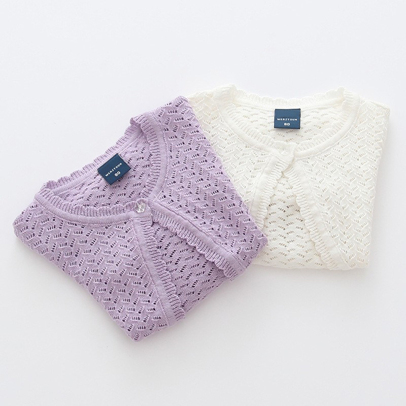 女童针织衫短款小披肩薄款宝宝儿童春夏白色棉毛衣线开衫外套外搭