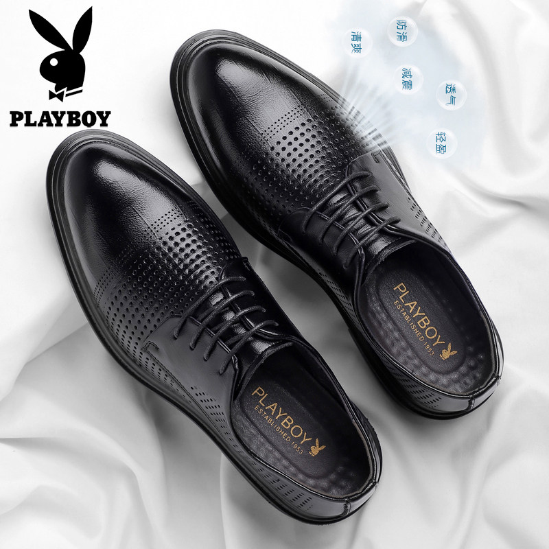 花花公子皮鞋男真皮透气内增高皮鞋镂空休闲商务正装结婚新郎皮鞋