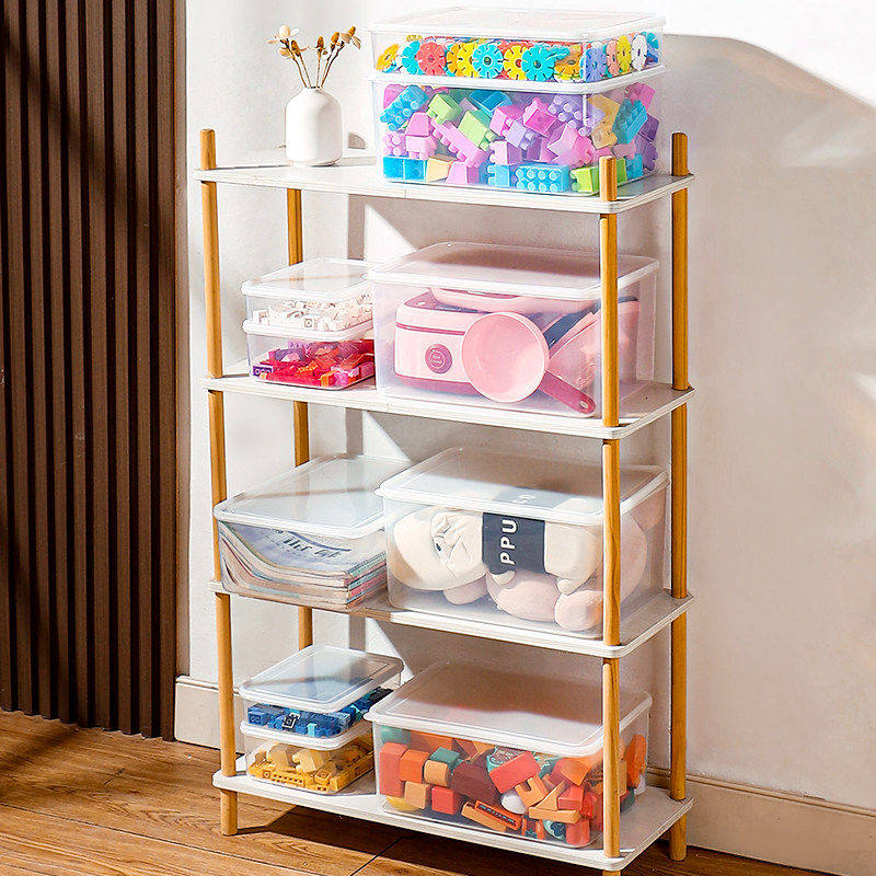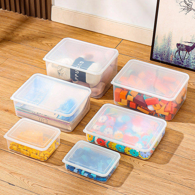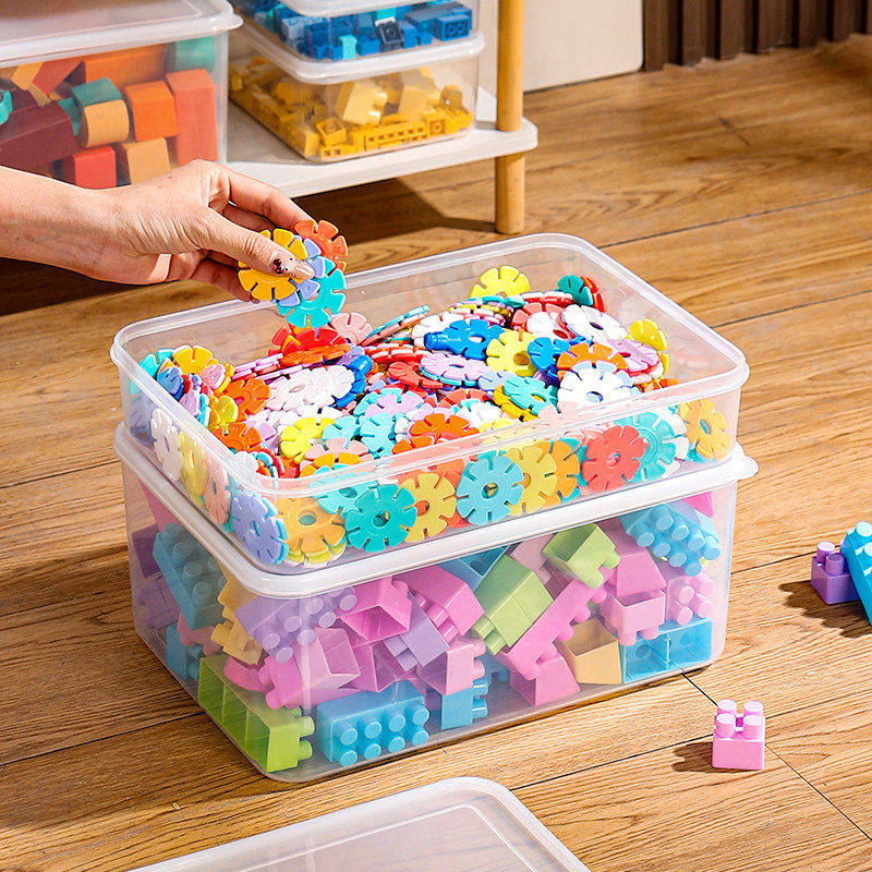 小颗粒积木收纳盒桌面透明大容量儿童玩具整理箱可叠加带盖储物盒