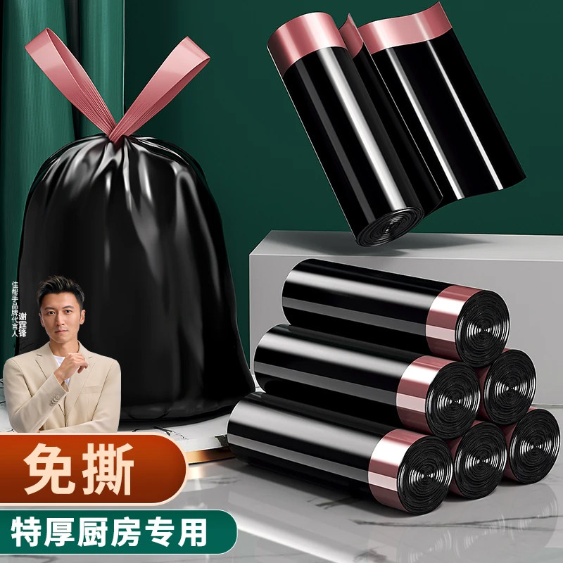 佳帮手免撕抽绳垃圾袋家用加厚手提式厨房大号实惠装拉级桶塑料袋