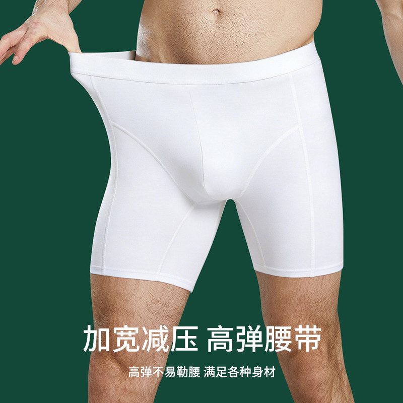 真维斯抗菌加长防磨腿男士内裤男款纯棉白色运动跑步健身五分短裤