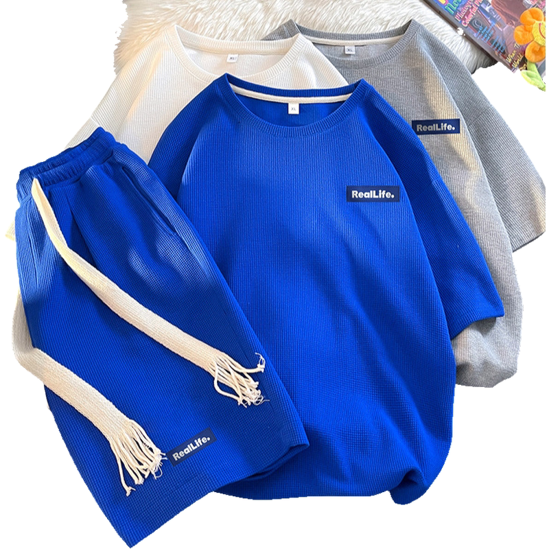 短袖潮牌时短裤T恤青少年夫格大码夏季男休闲运动服 套装尚华女款