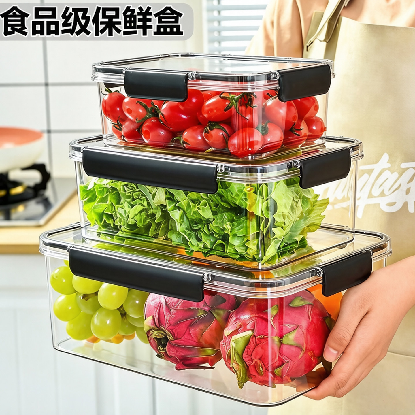 保鲜盒食品级冰箱收纳盒密封透明大容量亚克力泡菜果蔬整理盒带盖