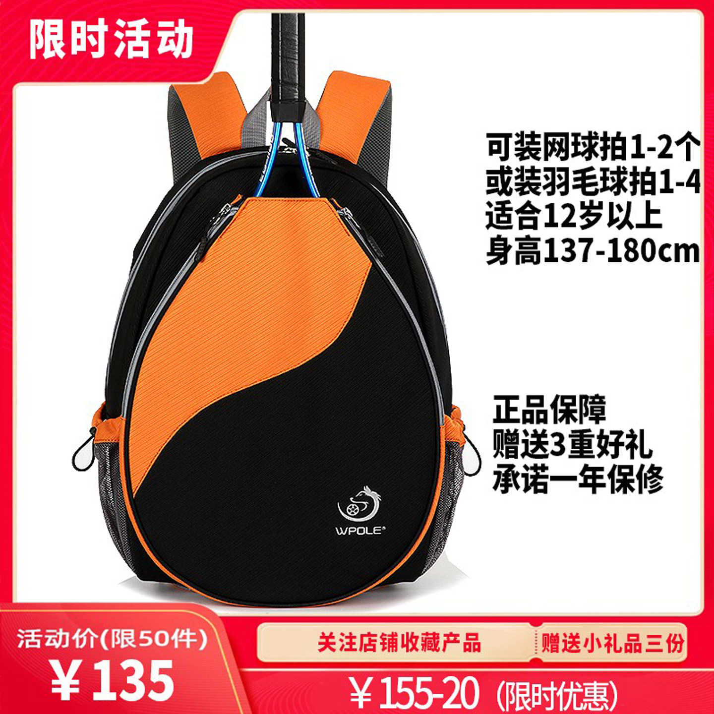 WPOLE小雪原创羽毛球包双肩包球拍套独立鞋仓大容量网球包柔力拍