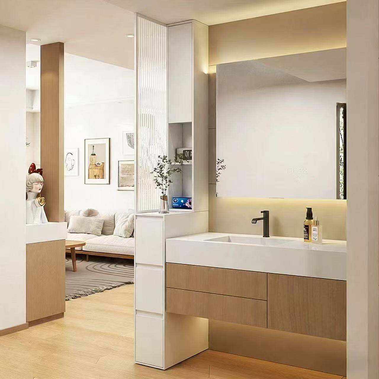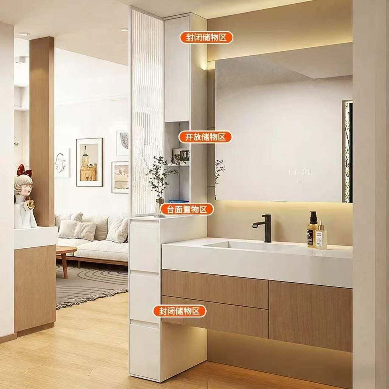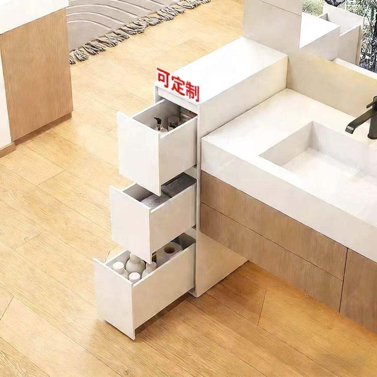 蜂窝铝浴室边柜卫生间干湿分离半墙隔断洗漱台防水抽拉侧边柜定制