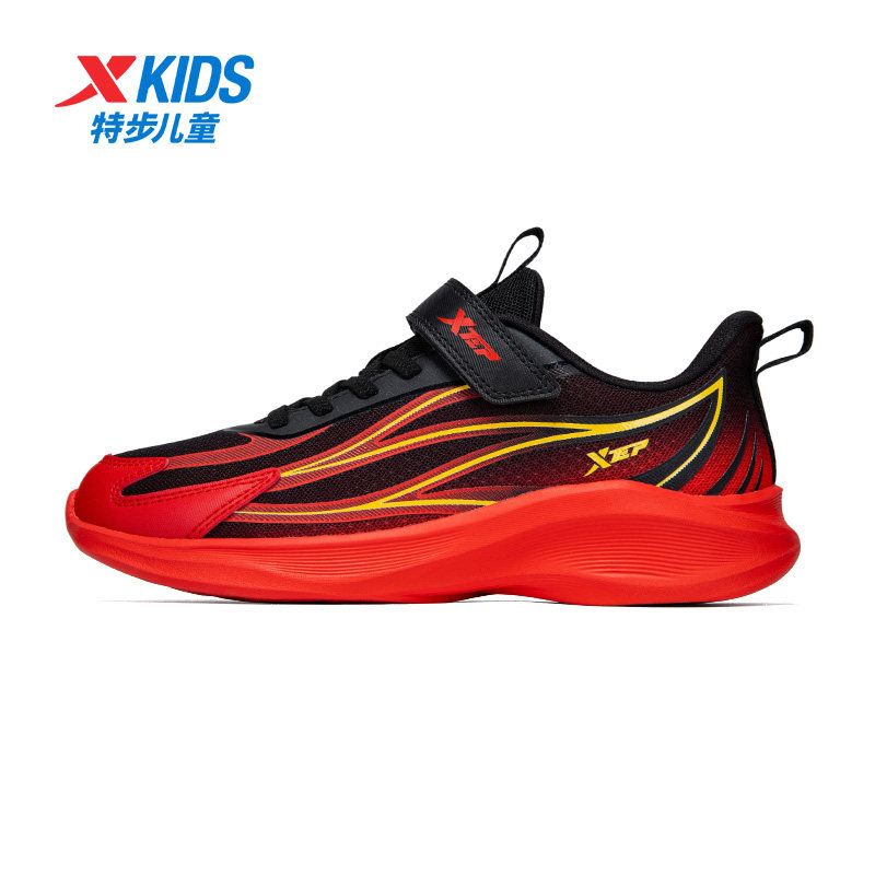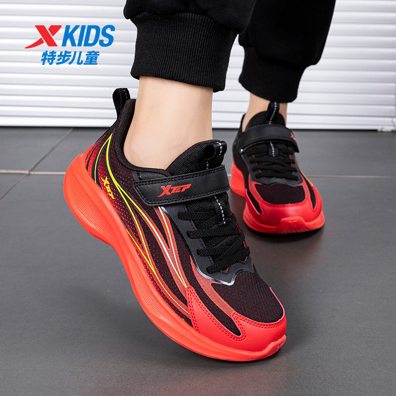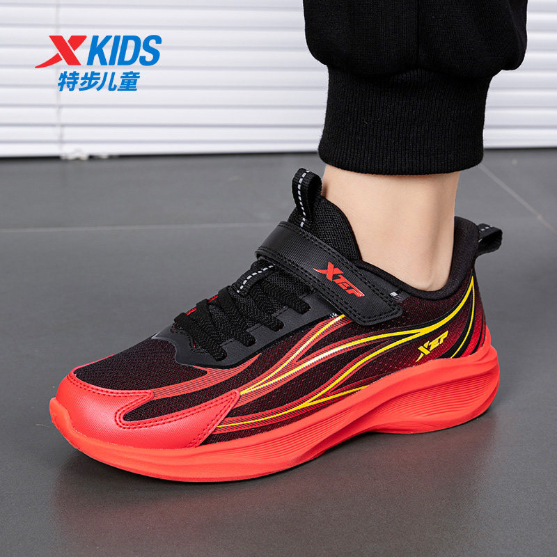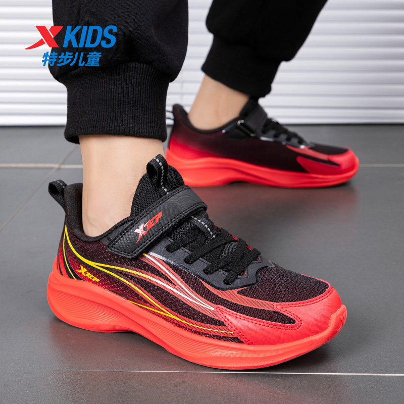 特步童鞋新年红色男童跑步鞋2026春季中大童缓震魔术贴儿童运动鞋