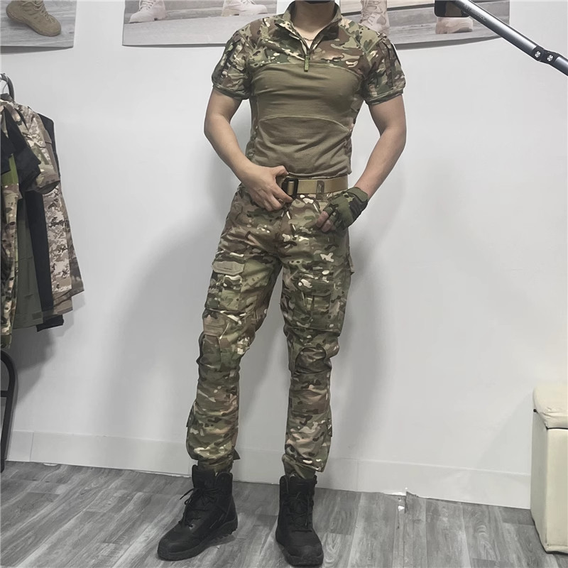 春夏男女户外战术迷彩长短袖套装束脚裤休闲防刮耐磨脏工作服透气