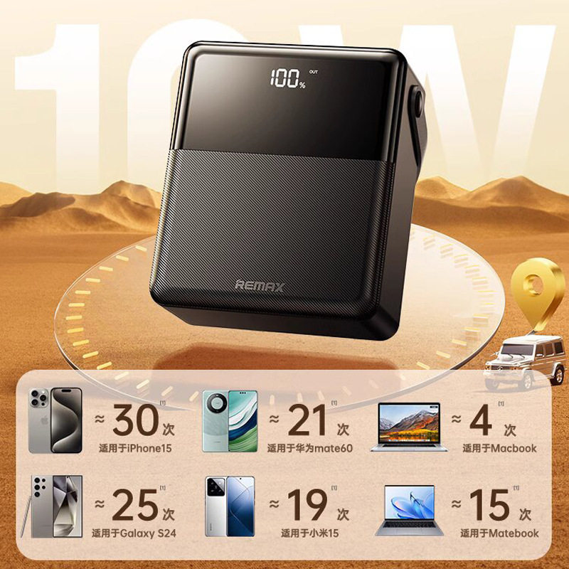 REMAX睿量充电宝大容量10万毫安27W快充带LED照明户外移动电源3C